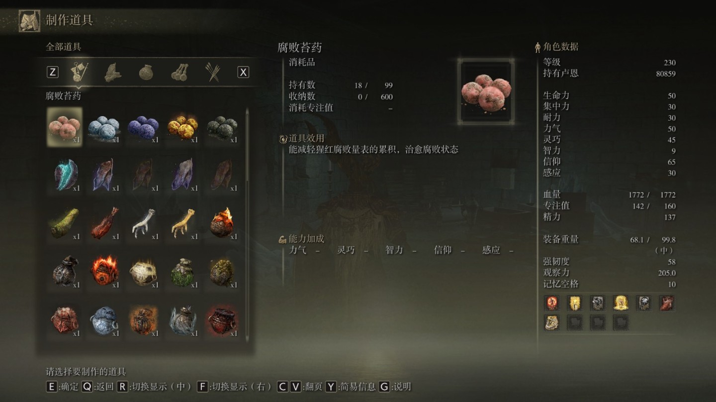 这次的制作系统较为鸡肋,很多物品我直到四周目都没有用过,更别说制作了。图纸的分布也比较分散,收集这些东西需要耗费大量的精力,而且往往吃力不讨好。由于本作的异常状态比较强力,伤血较多,制作的物品中,可能经常用到的就腐败苔药和中毒苔药。
