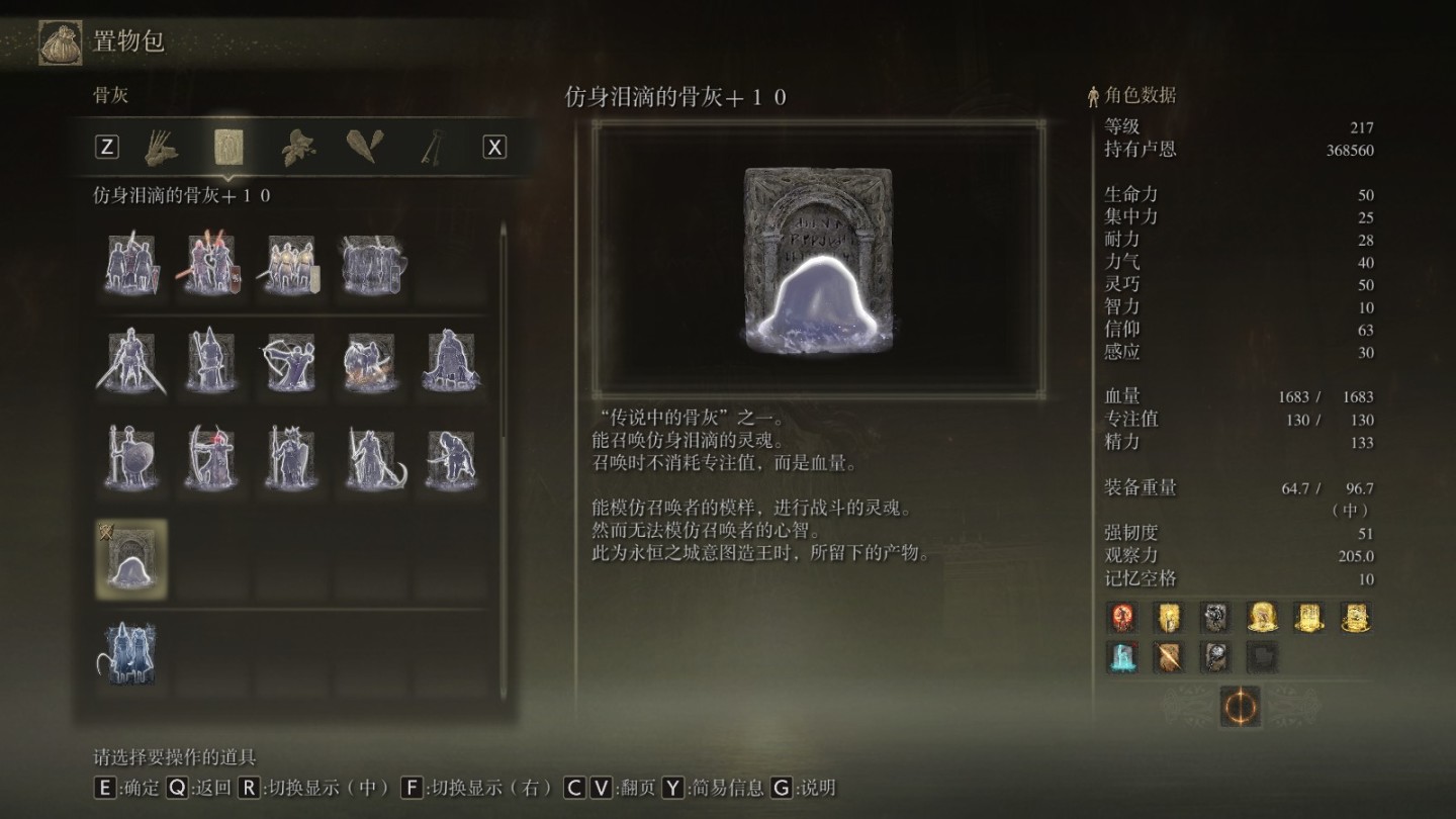 本作设计骨灰系统,简而言之有两种用处:第一,简化清怪的繁琐性,保证探索时的安全,降低风险;第二,降低boss难度,特别是双boss,比如双神皮,熔炉加混种等,此外,对于单个boss的加成尤其明显,因为艾尔登法环的boss并没有很多的对于多个目标的有效攻击方式,这样就大大地降低了boss战的难度。