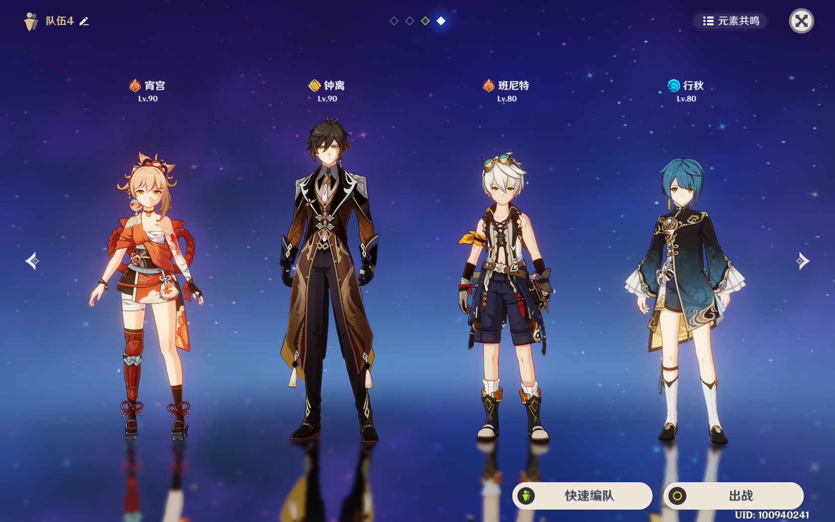推荐组合1:宵宫+钟离+班尼特+行秋
