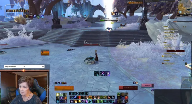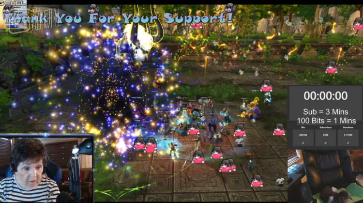 进行挑战的主播ID为“WowGrandma78”,来自美国亚利桑那尤马县,单看名字就可以猜出,她是一位《魔兽世界》玩家。