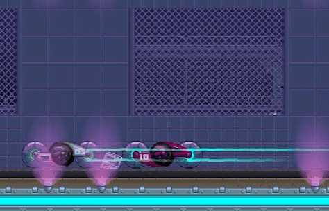 例4:【生化战士】这一款画风稍微有点变化,没有那么清新可爱,可能许多玩家都没有意识到这也是Nitrome的游戏。这个十多年前的游戏和如今的平台跳跃游戏差别不大,蹭墙、躲障碍和杀怪,但在当时作为一个免费的网页小游戏,拥有这样的品质实属不易。更何况它还有着可以地形破坏的设定。