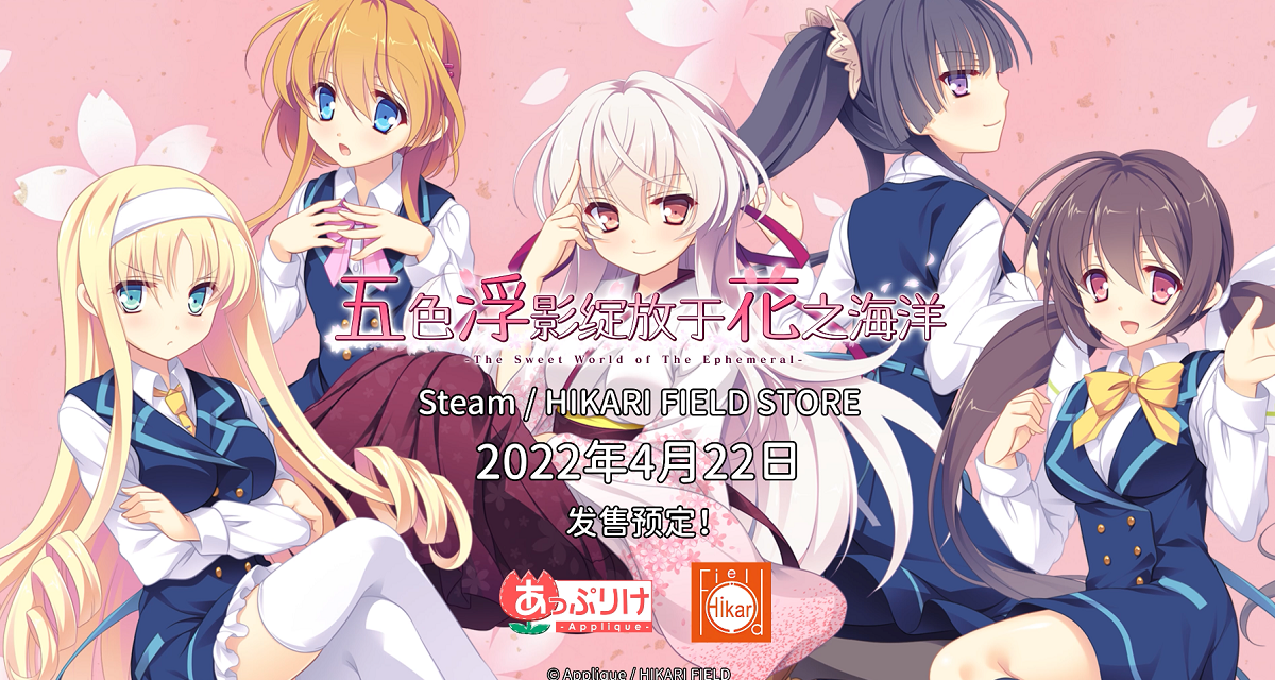 《五色浮影绽放于花之海洋》是由日本知名美少女游戏集团品牌Applique制作的和风传奇题材作品。由名作《月影魅像-解放之羽-》与《黄昏的禁忌之药》的原班人马打造。由小田原箱根担当人物设计与原画,由桐月担当剧本,由鹰石忍制作音乐。片头主题歌《华历》由知名歌姬Ayumi.献唱,曾荣获萌系游戏大赏的年度主题曲金奖。