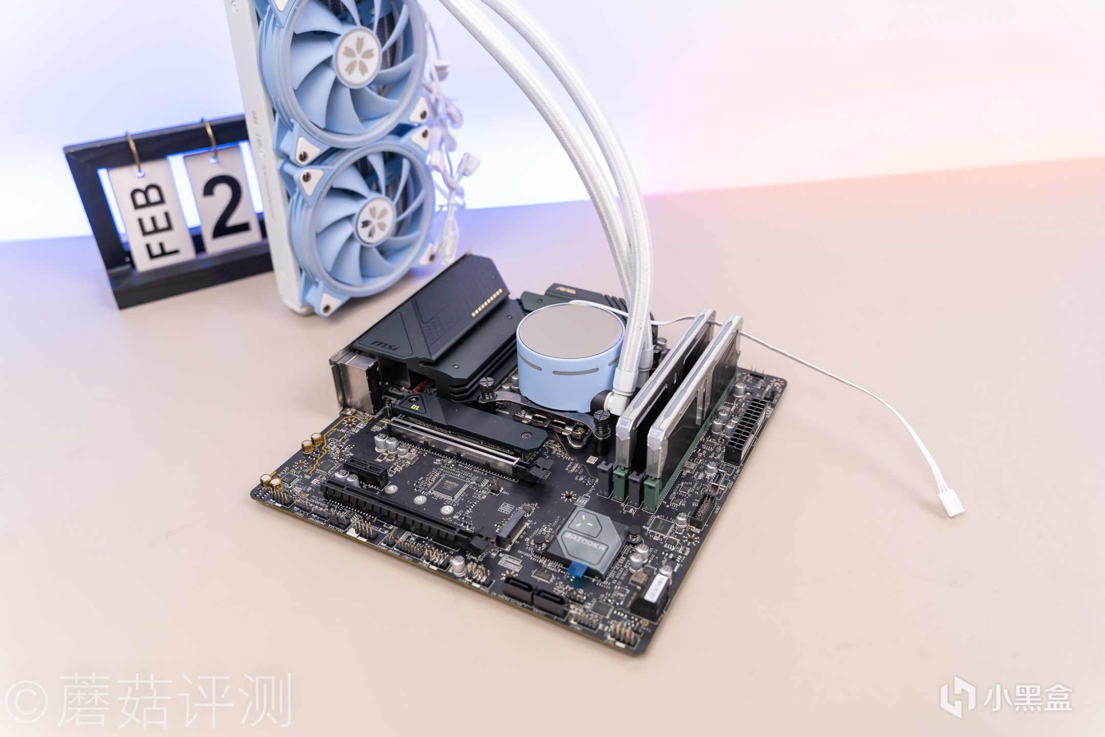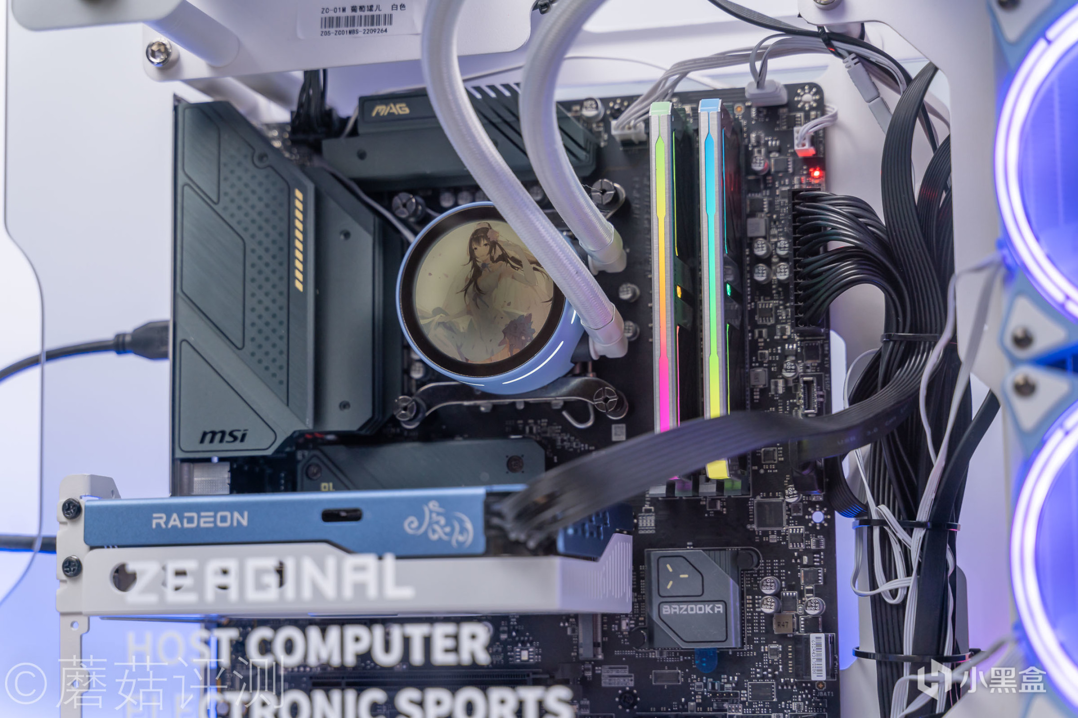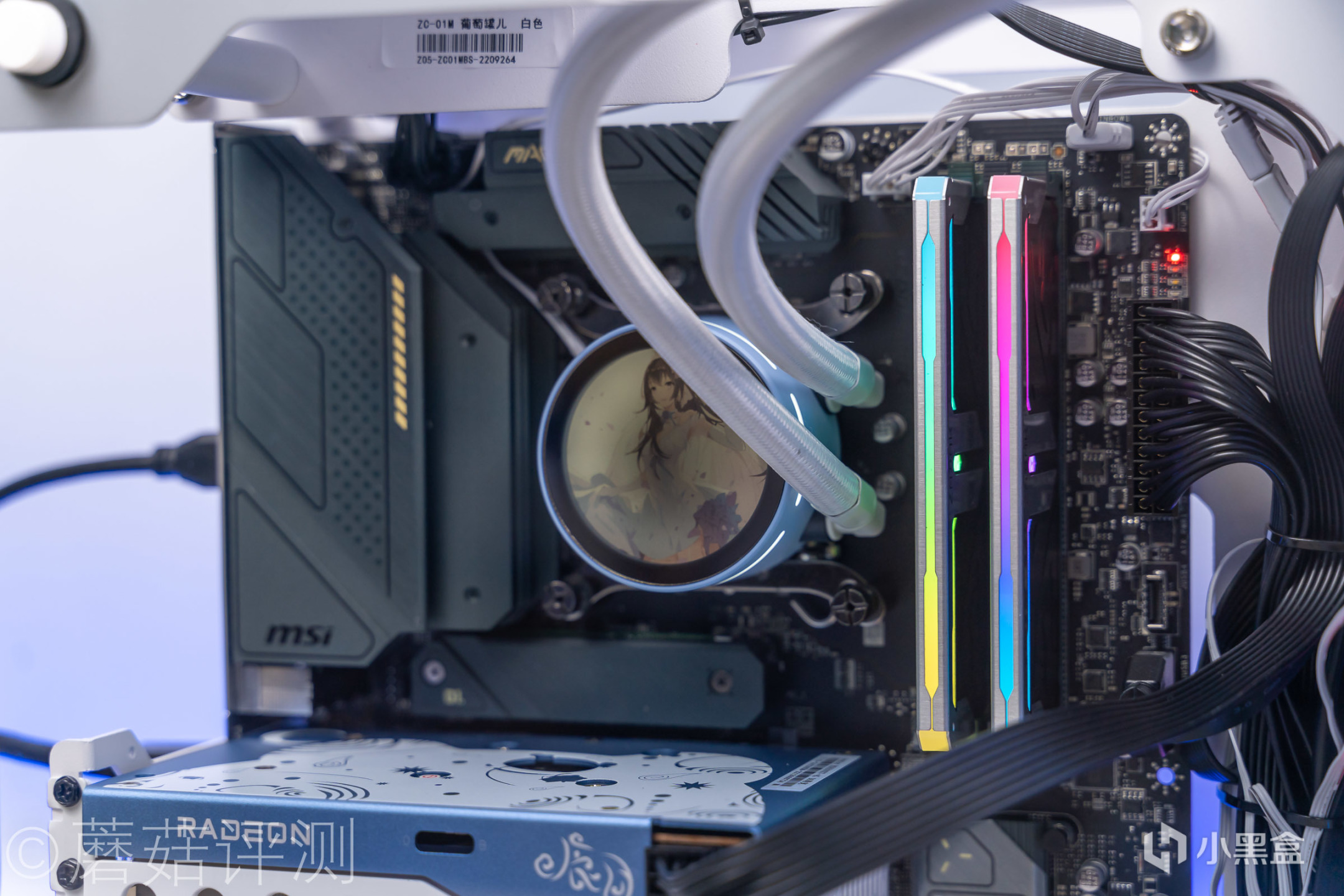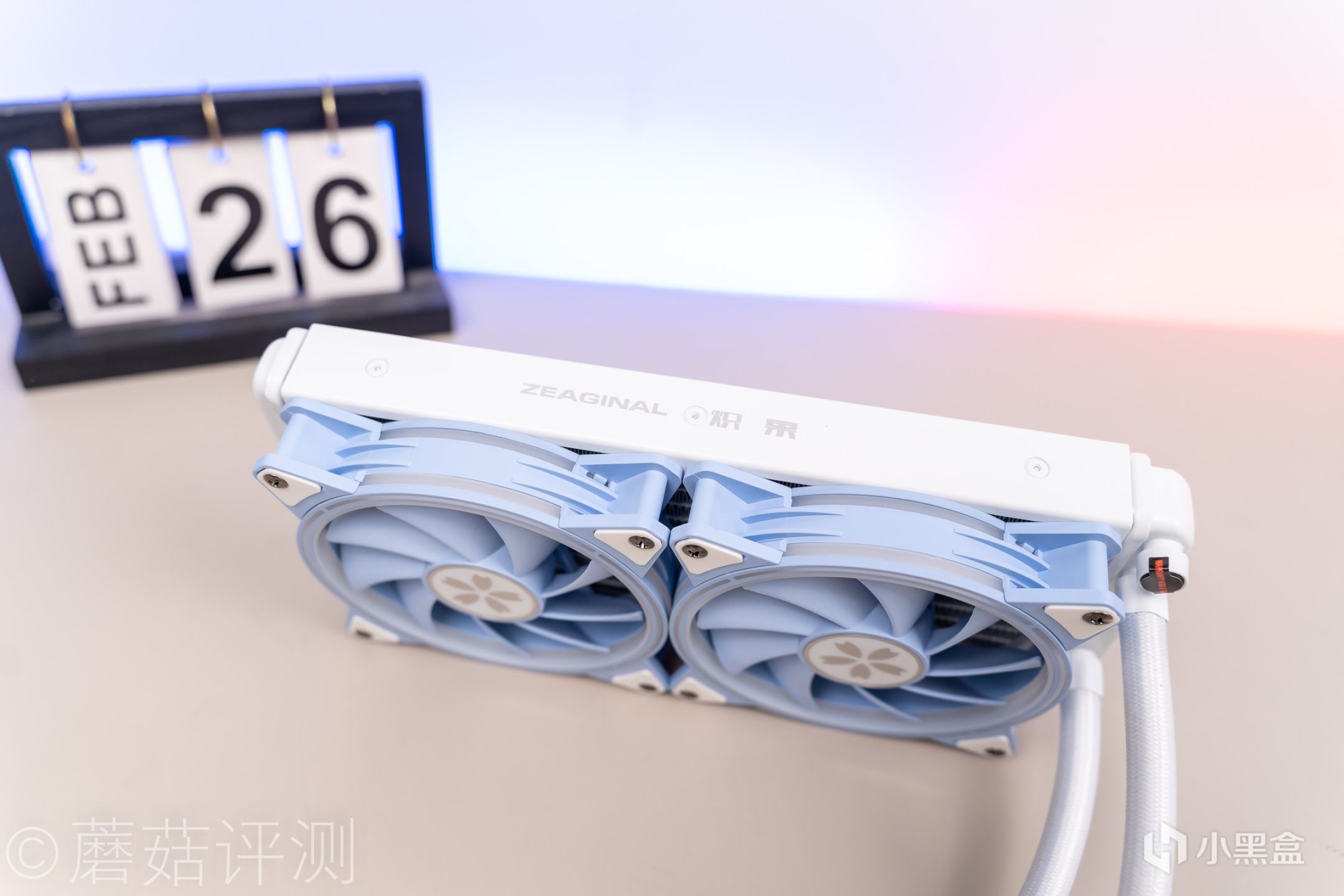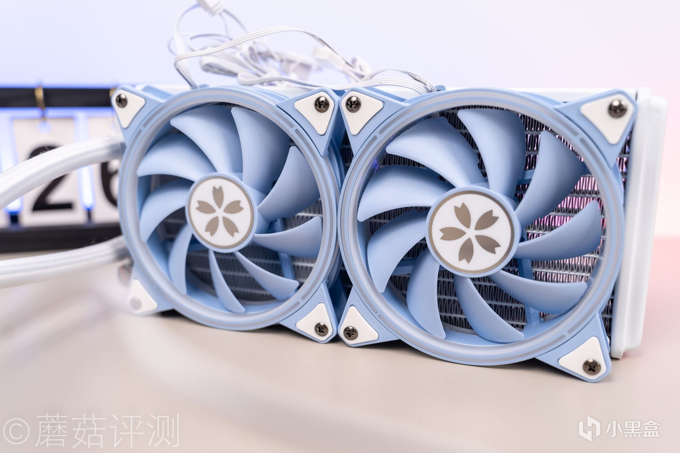 ▼散热选择了炽果的樱瞳花嫁240一体式水冷,这款水冷的颜值非常漂亮,整体采用白蓝色的配色,冷头的顶部也有特殊的外观设计。