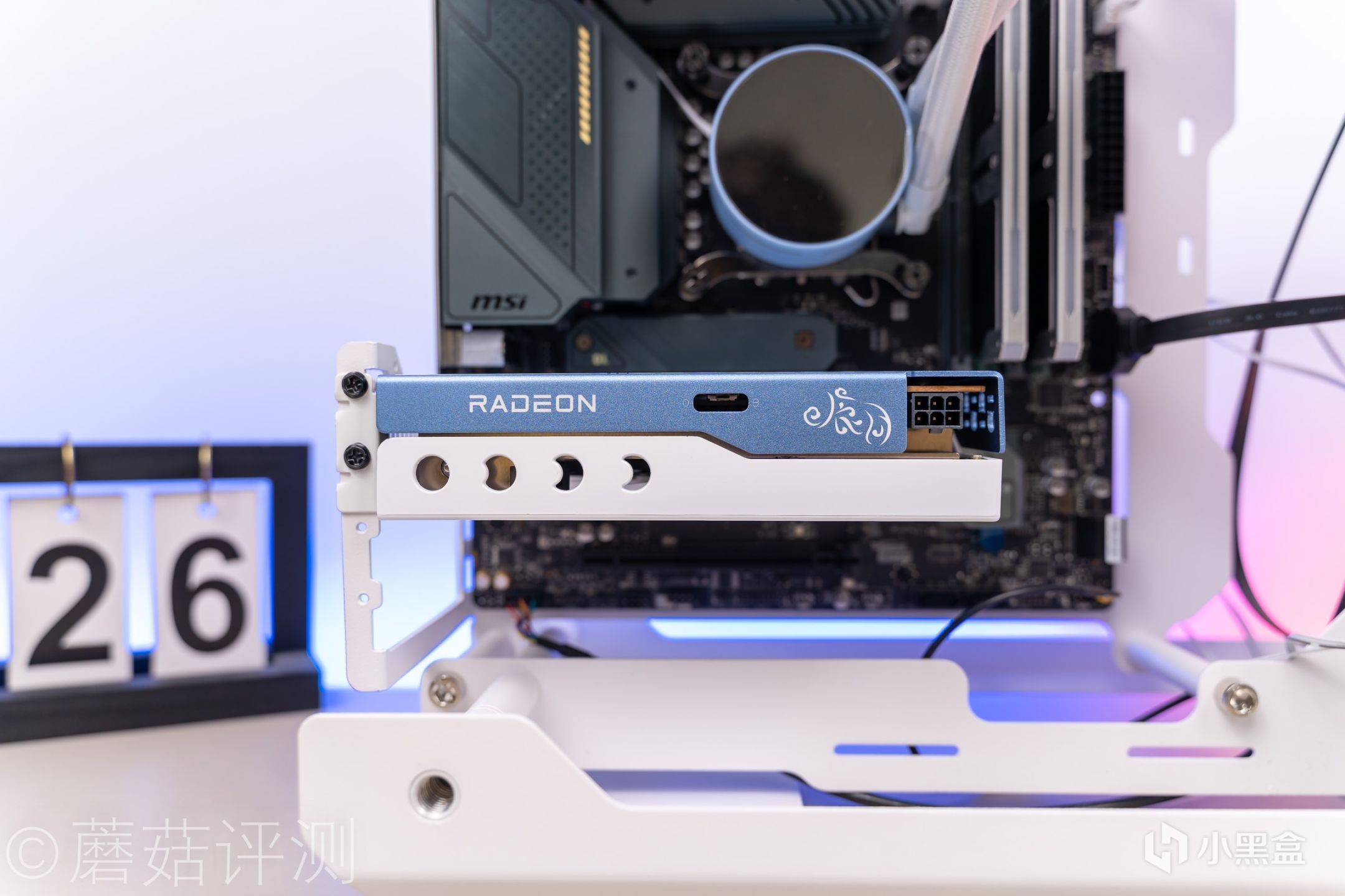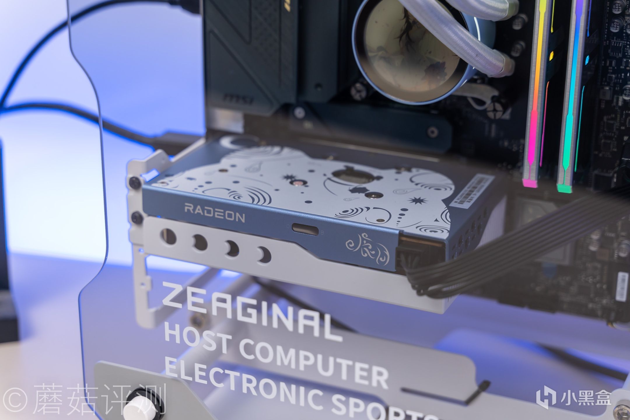 ▼冷头侧面也是蓝色的,并且顶部有分段式的RGB灯带。