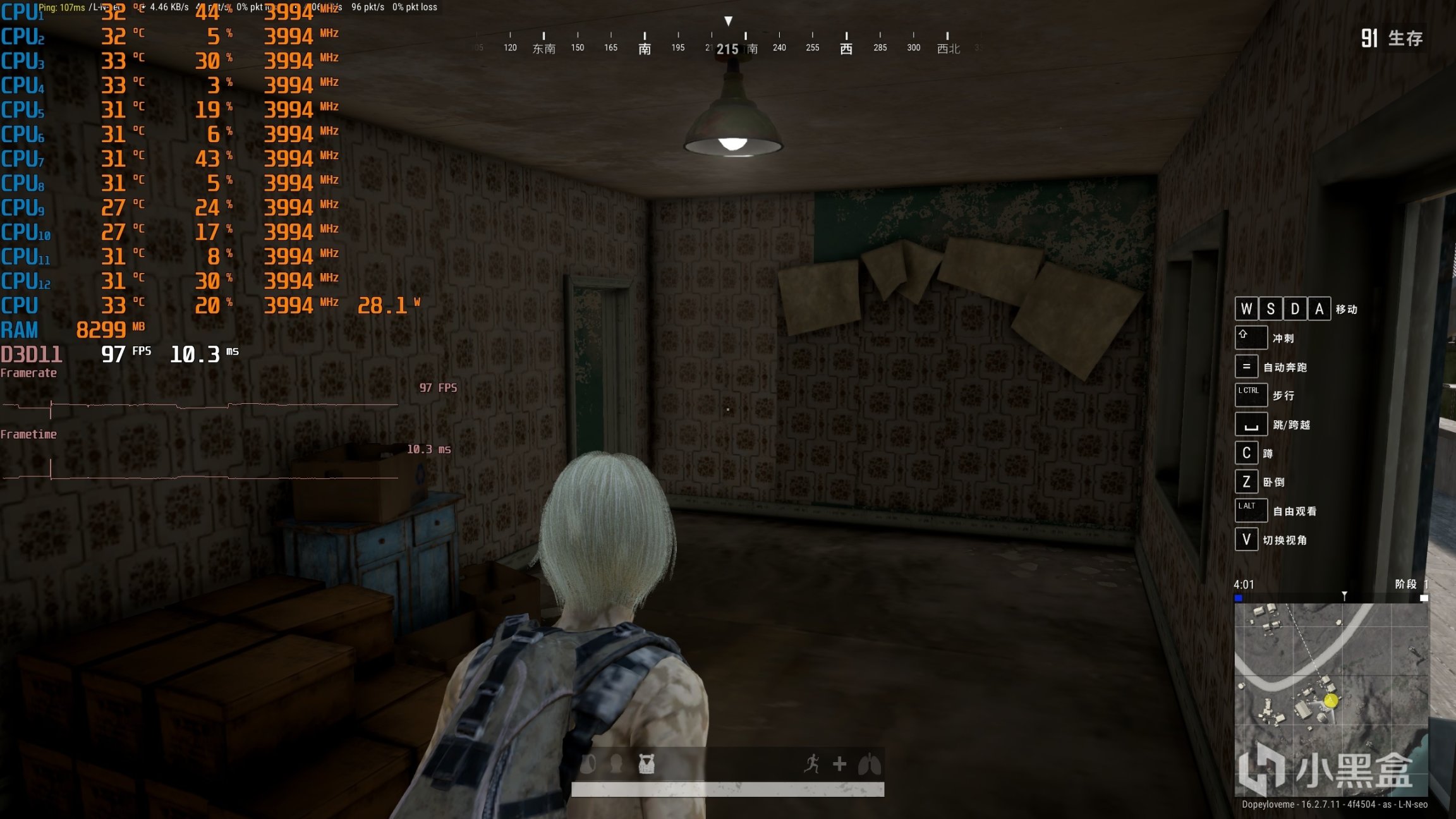 ▼室内游戏帧数还能更高一些,97帧左右。
