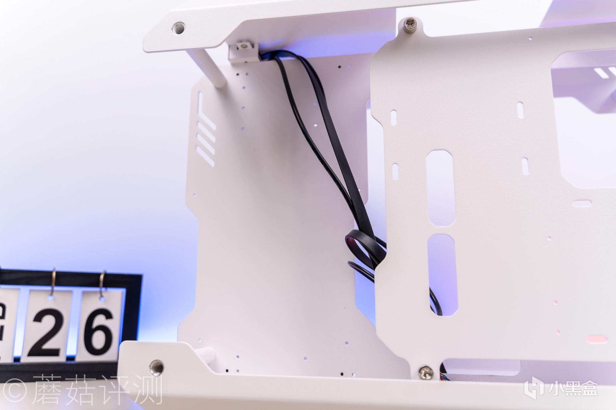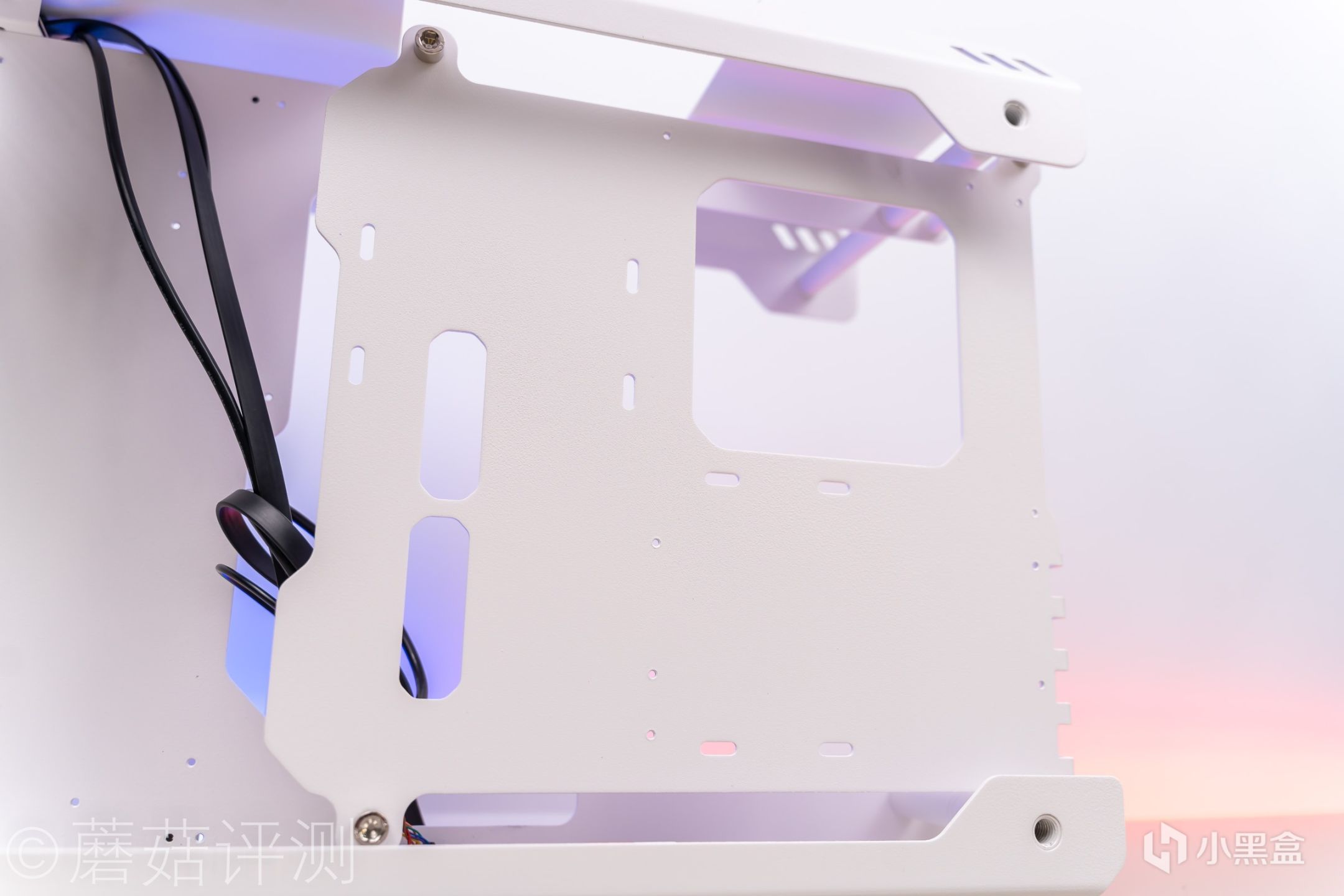▼右侧部分是主板背面,有一些孔位,可以用于固定硬盘之类的配件。