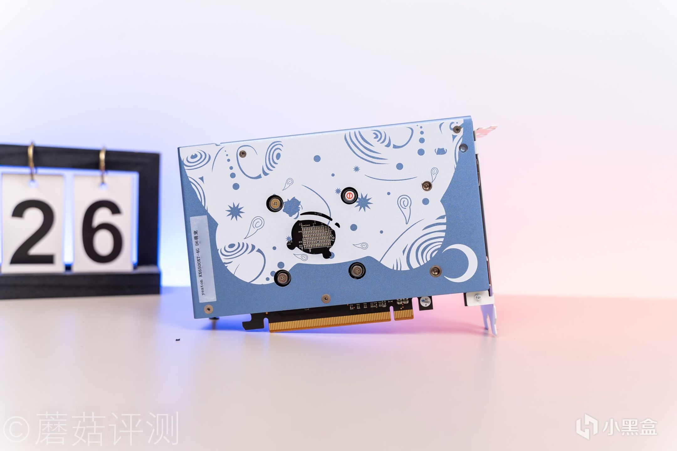 ▼盈通的萌宠RX6500XT显卡很精致,显卡金属背面的涂装在正常安装的情况下是正的,细节不错。