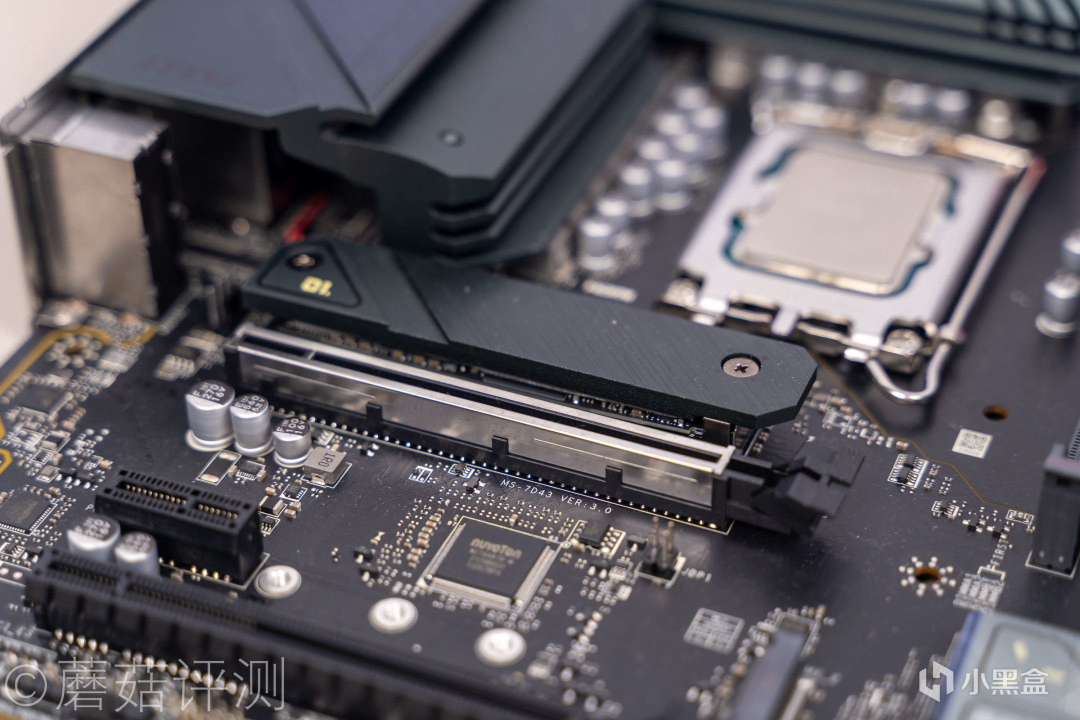 ▼固态直接装到主板上,微星B660M火箭炮最上面的M2接口有原装散热片。