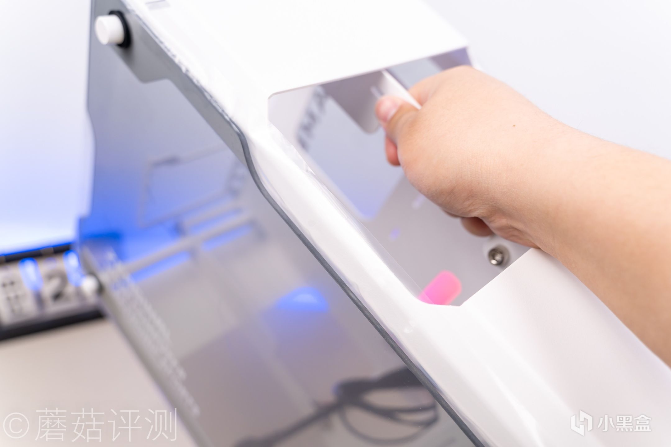 ▼镂空部分的中间有一个金属的横梁,中间有剪薄设计,方便握持。蘑菇试着拎了一下,没什么问题,可以拎起来。