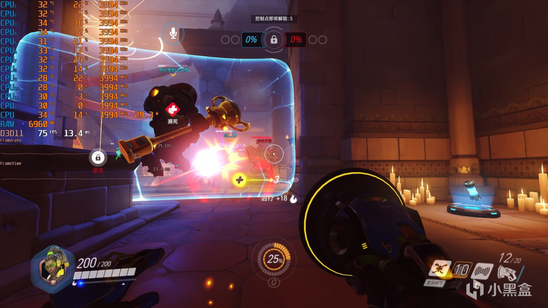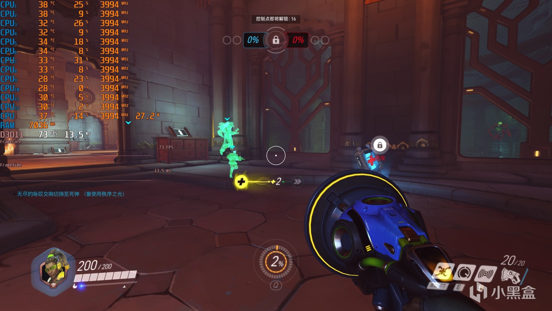 ▼守望先锋,2K分辨率,全极高画质,日常逛街的游戏帧数在73帧左右。