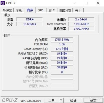▼内存部分,扎达克的SPARK内存,8G*2 3600 MHz,时序17-19-19-39。