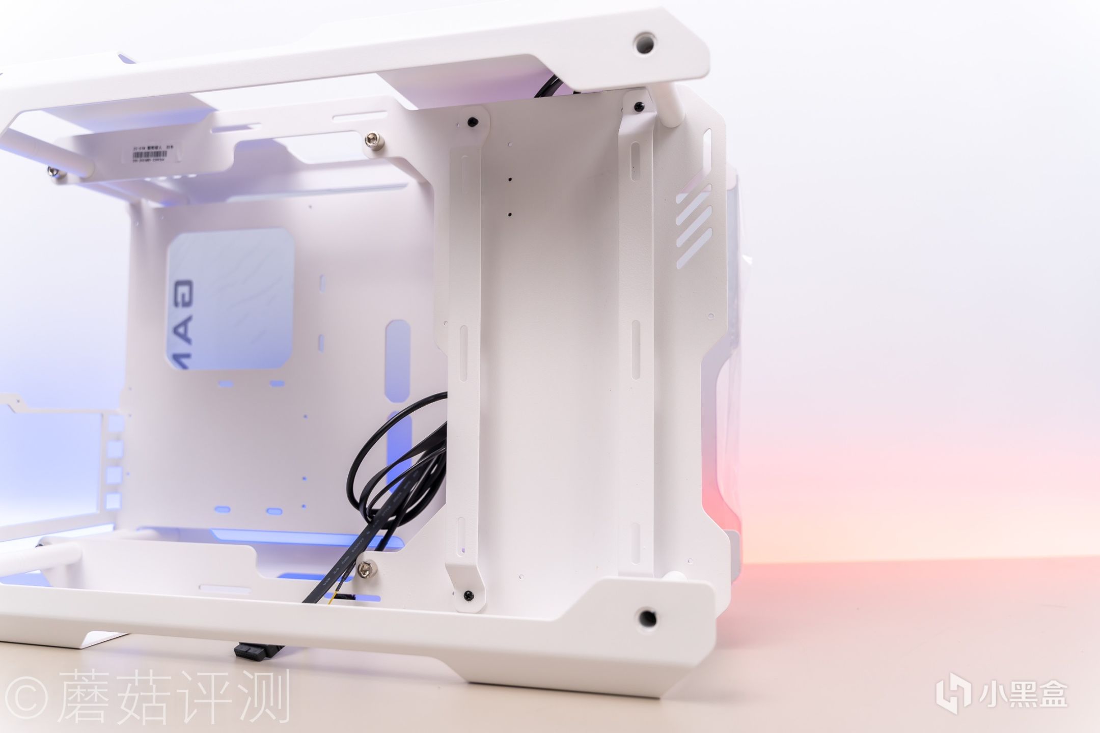 ▼机箱的结构很有意思,两侧是钢化玻璃材质,中间是金属骨架。