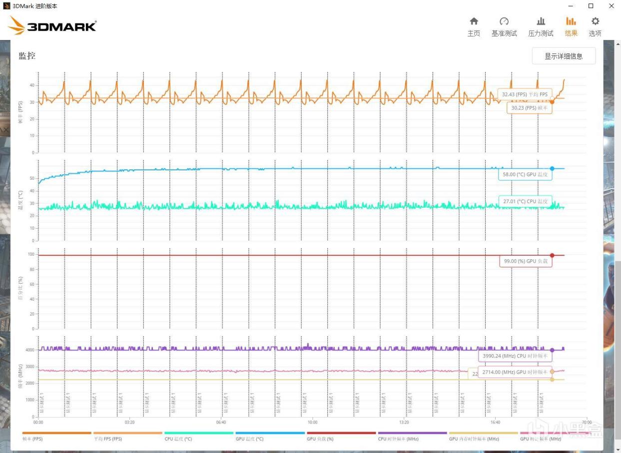 ▼3Dmark的压力测试,TS模式,帧数稳定率在99.4%,非常稳定。