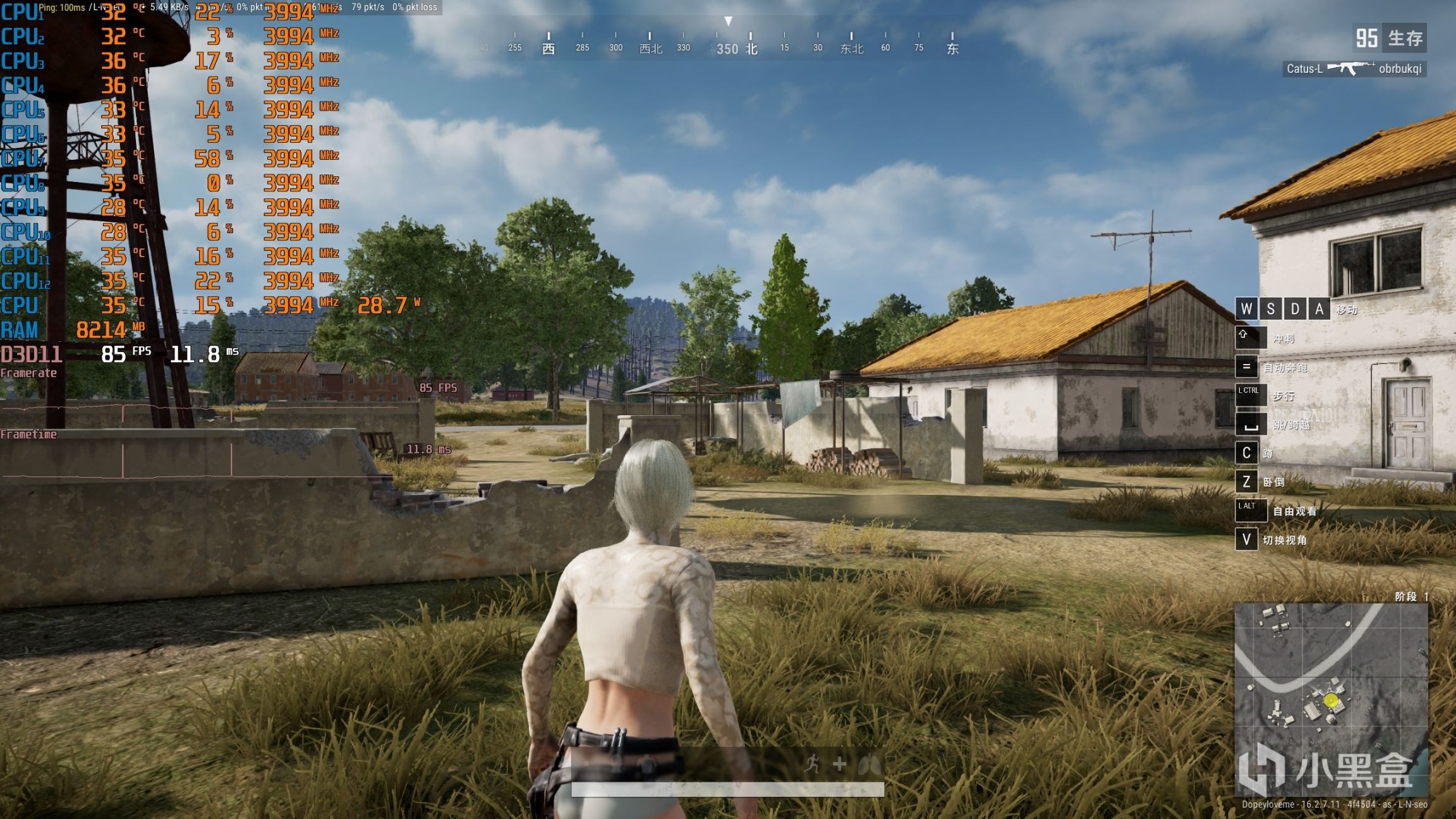 ▼吃鸡,2K分辨率,全低画质,室外游戏帧数在85帧左右,较为流畅的玩没啥问题。
