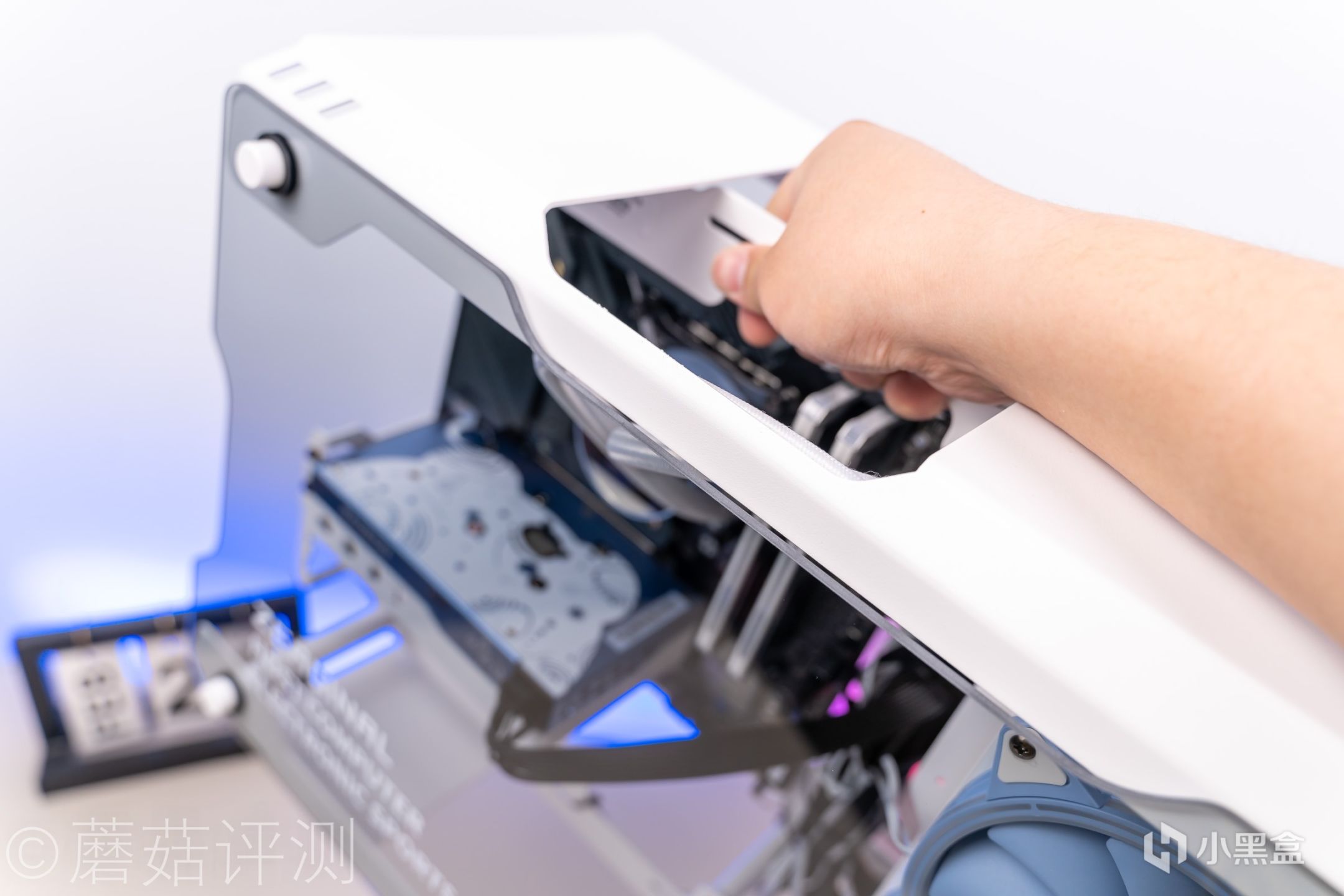 ▼水冷主题非常漂亮,整体采用白蓝色的配色,而且那个蓝色是类似那种雾霾蓝的感觉,整体微微发灰,很有质感。