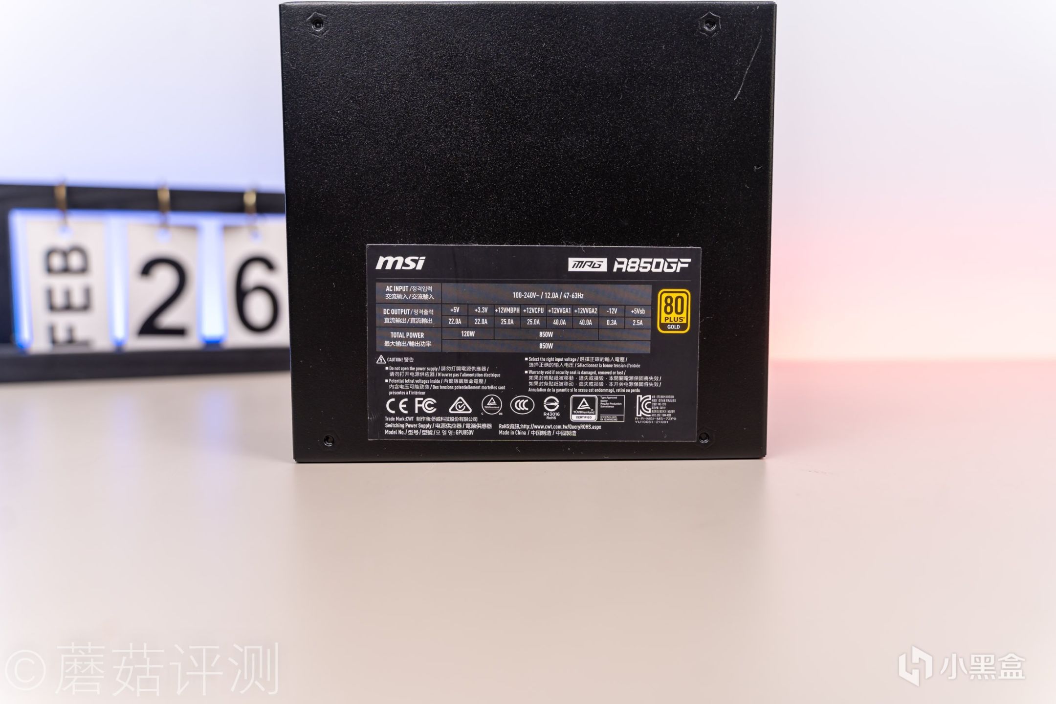 ▼电源背面有标签设计,标称850W,其中+12V输出最大850W,还是很厉害的。