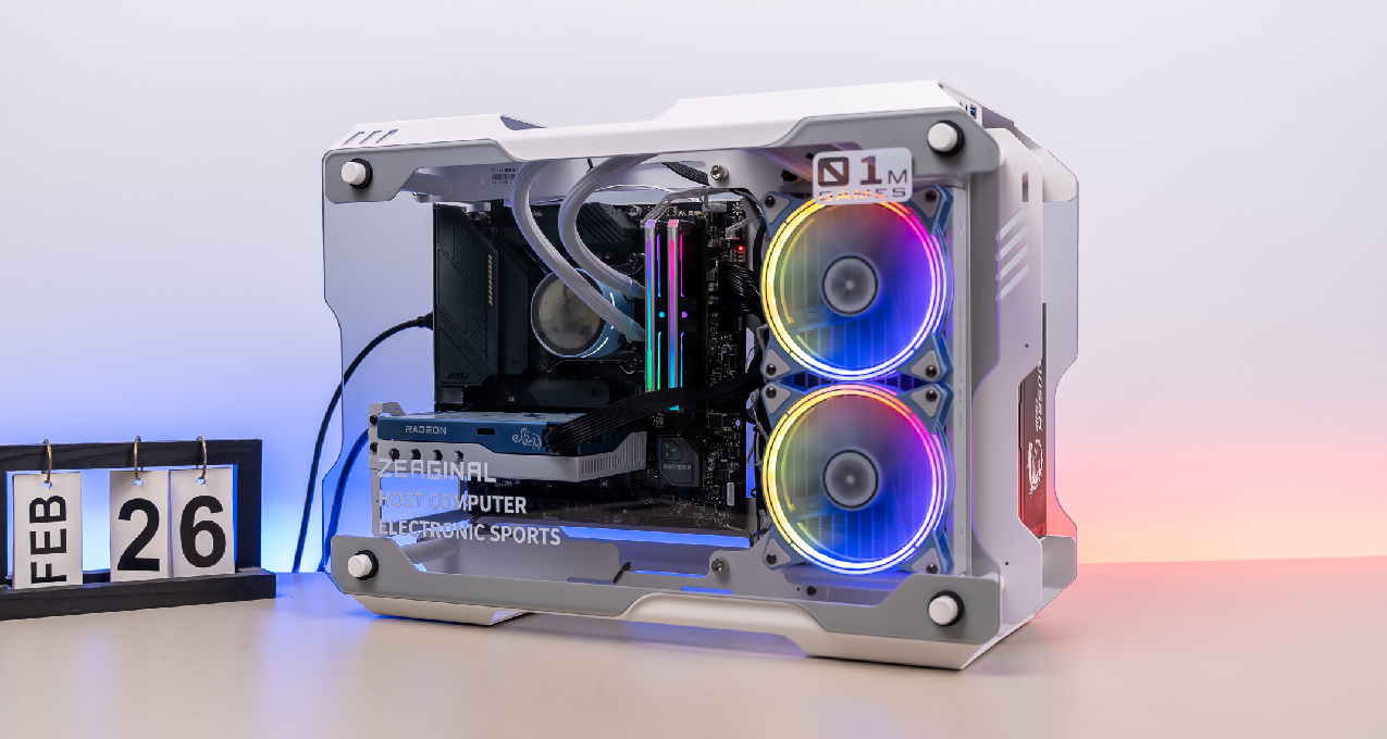 炽果的01M葡萄罐儿机箱还是很不错的,用料很棒,双面侧透,两侧均有非常后的熏灰的玻璃侧板,中间是金属骨架,另外,机箱顶部的中间位置还有一个提手设计,方便日常搬运机箱,很方便。内部空间设计方面,主板固定在左侧,右侧有一个专门的240冷排安装位,后部支持ATX规格的电源和固定硬盘,整体来看还不错。理线方面,双面侧透走背线不好看,建议直接固定到主板和水冷排的中间位置。