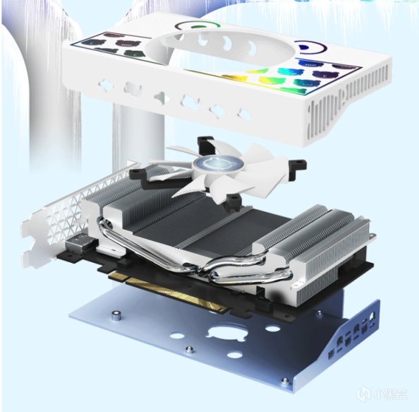 别看这款显卡比较小,但是散热做工却毫不含糊,采用3根6mm热管,穿过铝制鳍片,能将核芯产生的热量迅速排出,显卡在顶部和底部的散热罩上设计了镂空的图案,有助于散热的同时还提升了美感。