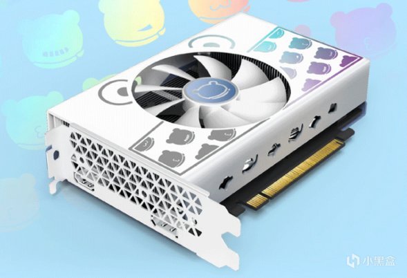 显卡采用白色主题,散热罩正下方采用多个狗头图案的设计,再加上单风扇上的狗头LOGO,给人一种卡哇伊的感觉。尤其是表面还有镭射光感的处理,在光线之下呈现彩虹色的炫彩效果,给原本的奶油白的底色增加了一份律动感,视觉和潮流气息都有了,定制的外观果然不一样。