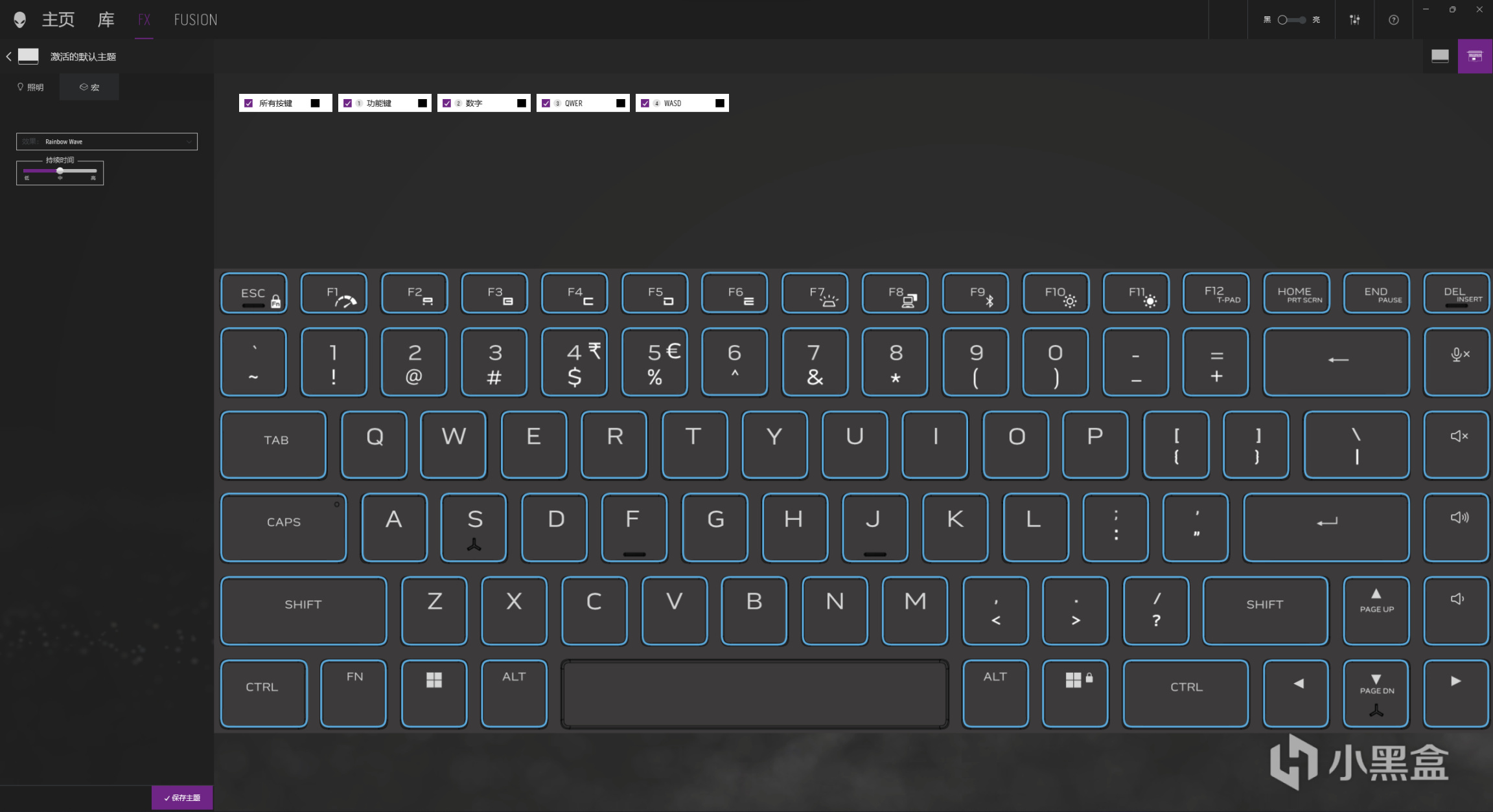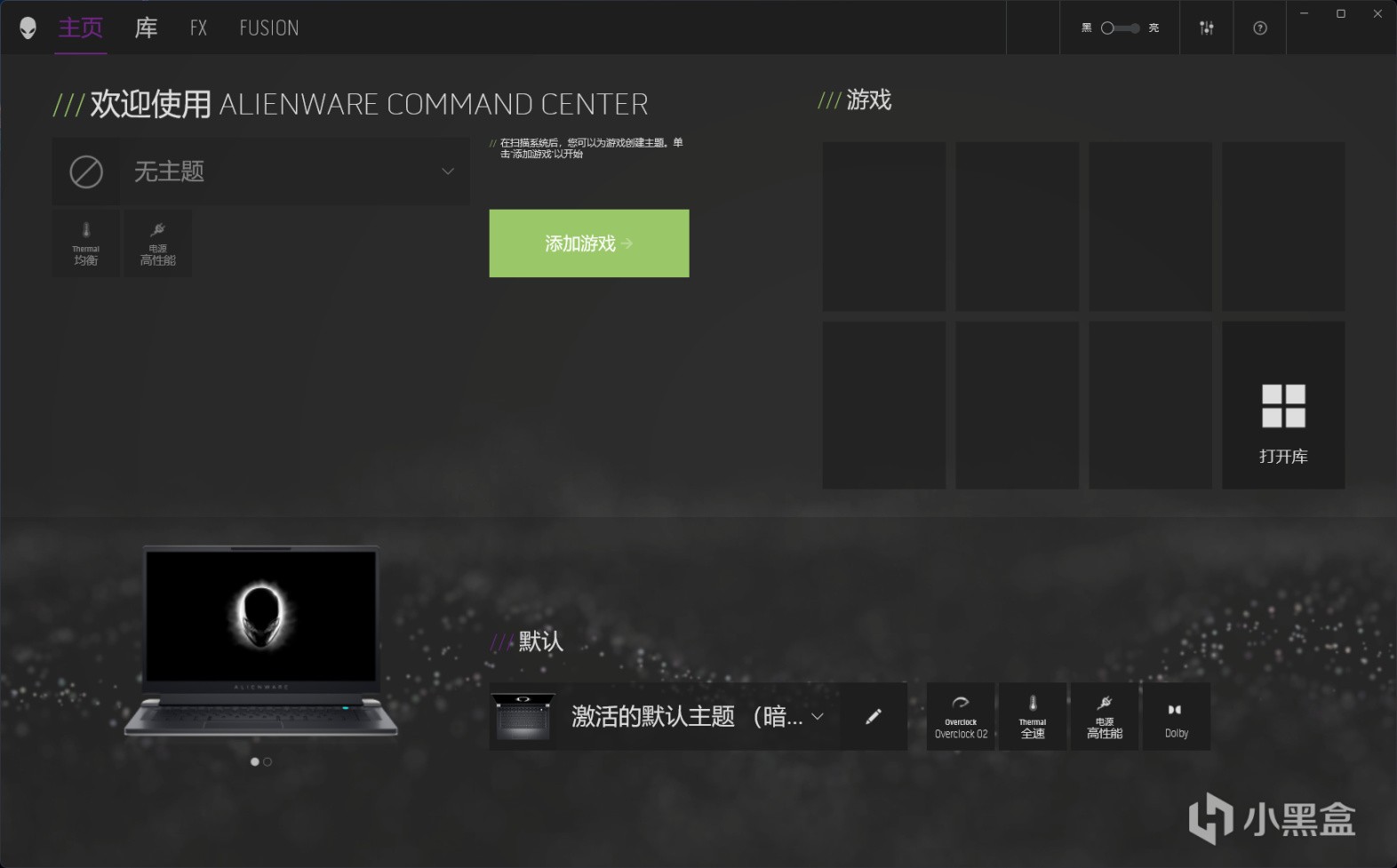 在Alienware Command Center中可以调节AlienFX RGB 灯效,包括A面,C面键盘区域和尾部环形区域,可以同步也可以分区设置,也有预设灯效,外星人的灯效也是玩家群体中认可的传统艺能了。