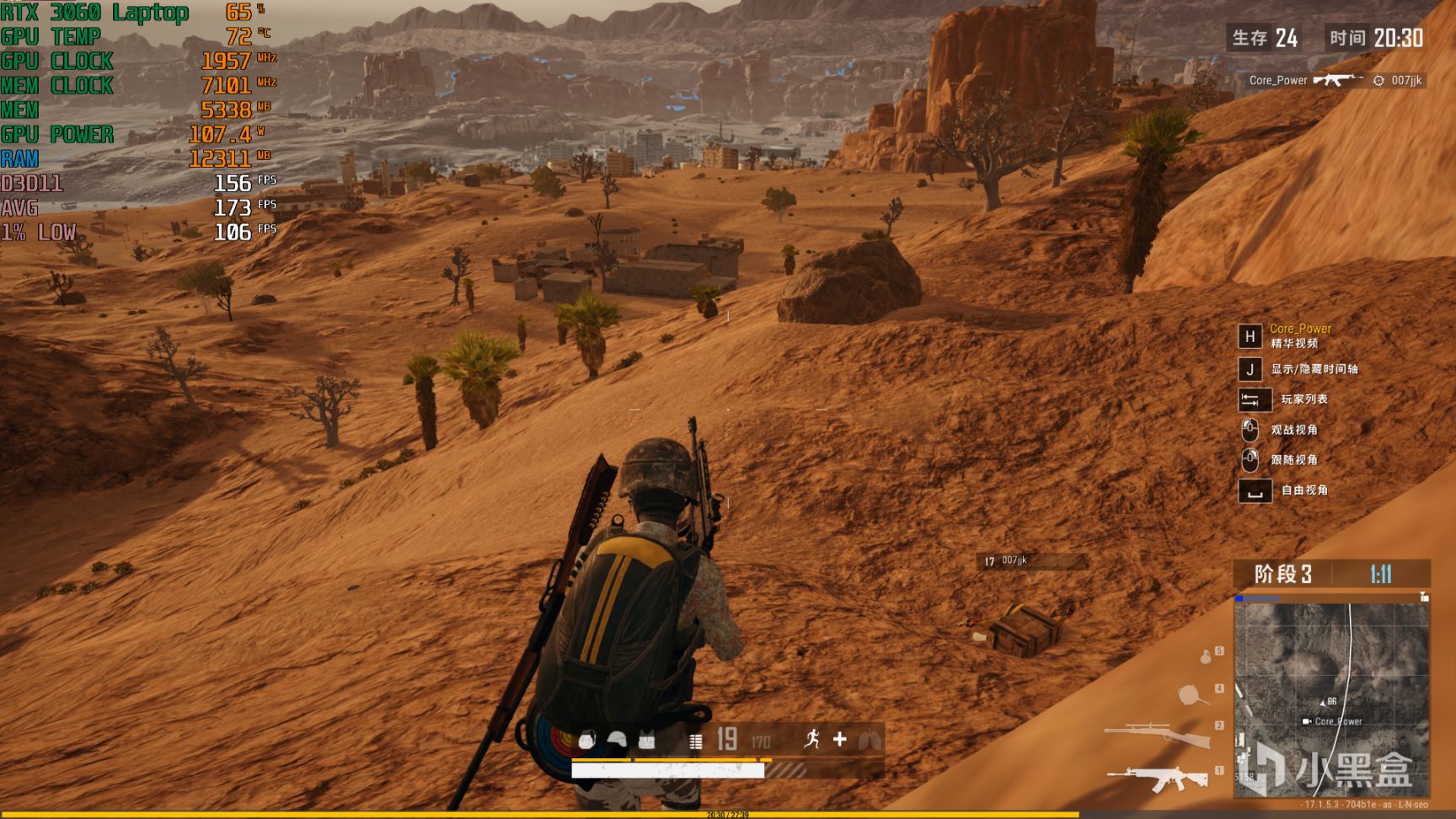 《绝地求生》2K米拉玛地图抗锯齿和材质超高,其他非常低,平均173fps