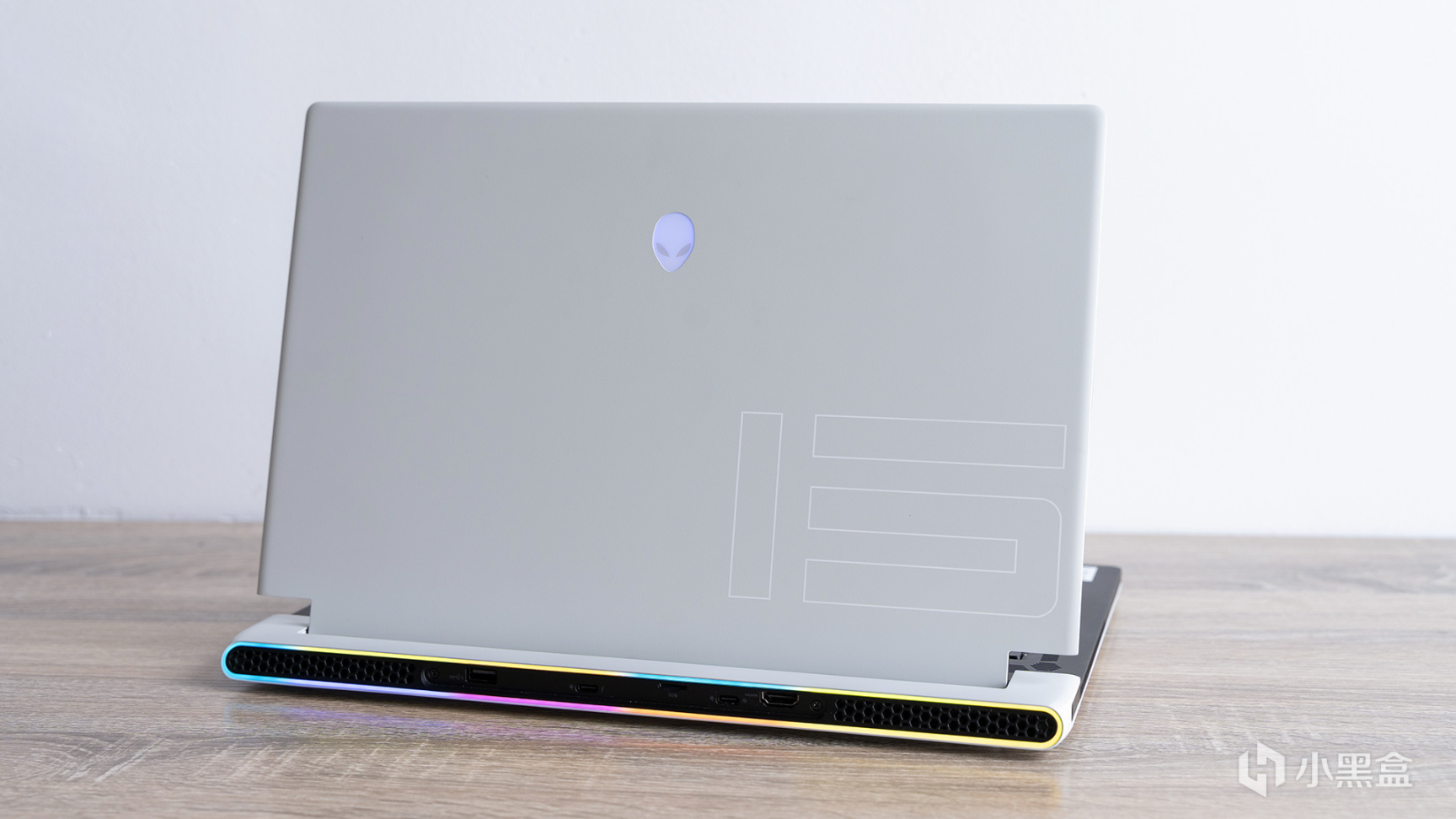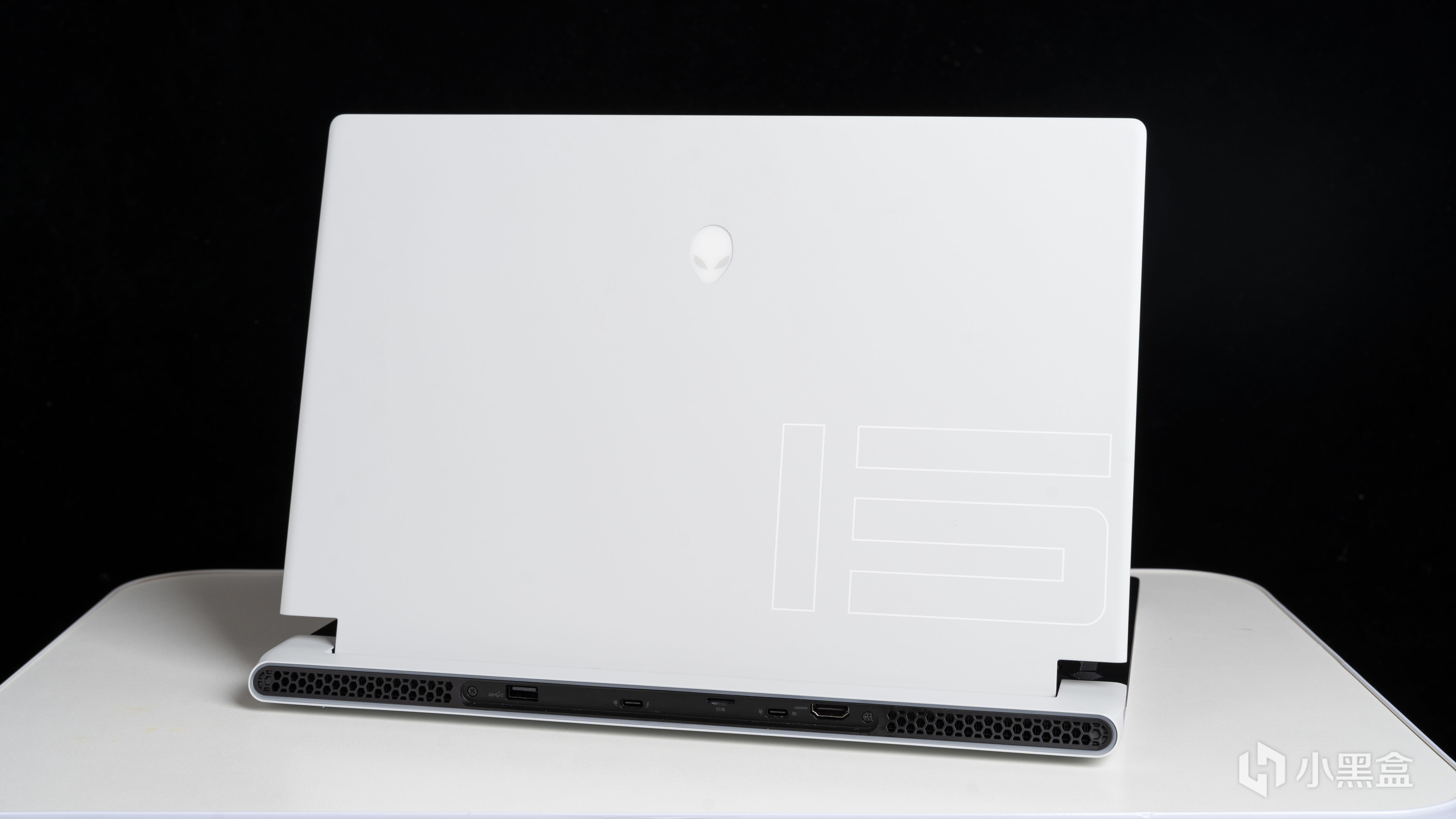 上手先来审视一下Alienware X15 R2的外观,先看A面,这款Alienware X15 R2是白夜搭配主题,放眼上去,简洁化、扁平化、蜂巢散热孔这些特色元素总是很搭,总会第一时间吸引眼球,A面的简洁性,只剩下15的数字和外星人LOGO,采用类肤质感也是相当不错,并有防污涂层。