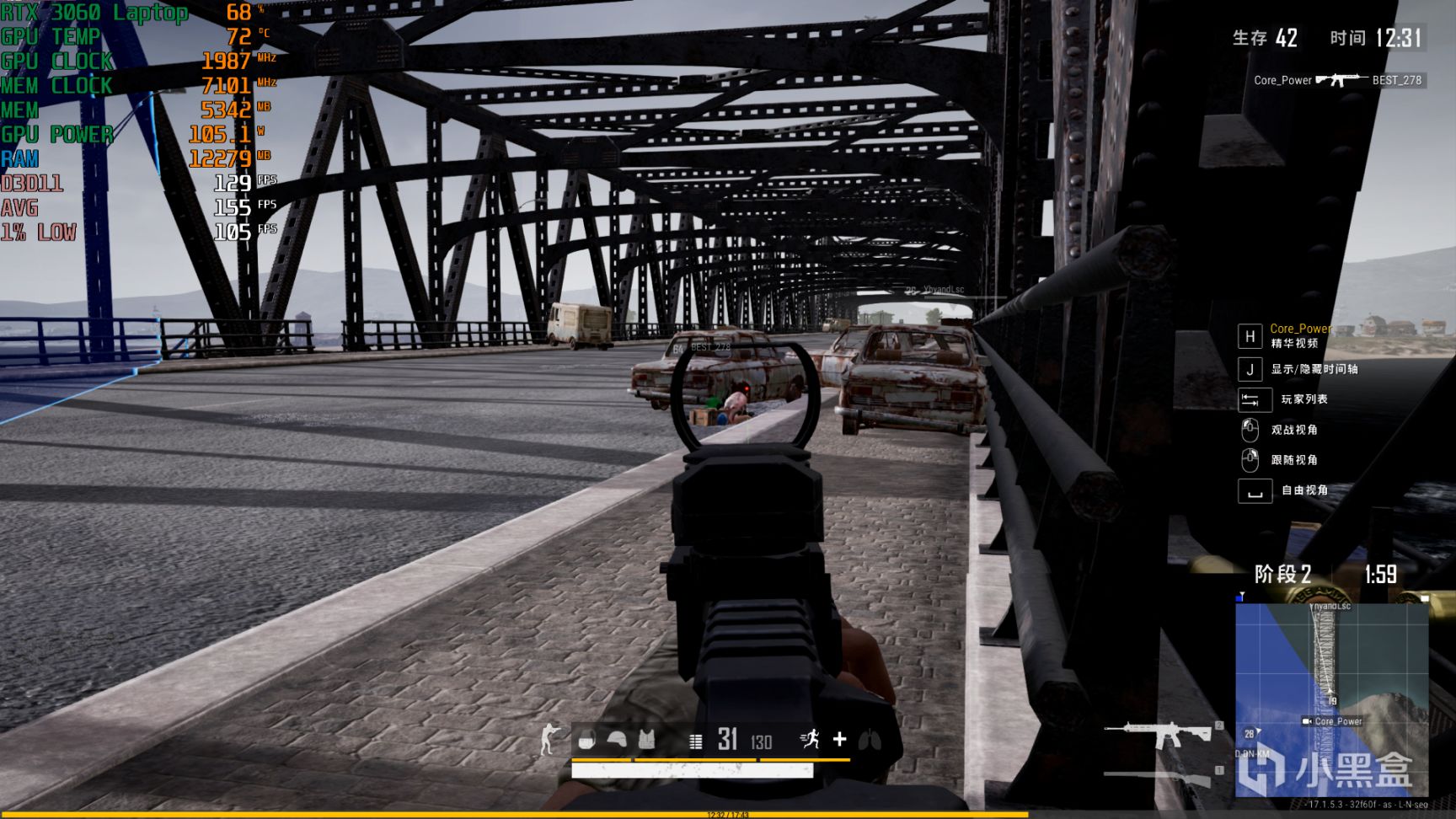 《绝地求生》2K艾伦格地图抗锯齿和材质超高,其他非常低,平均155fps