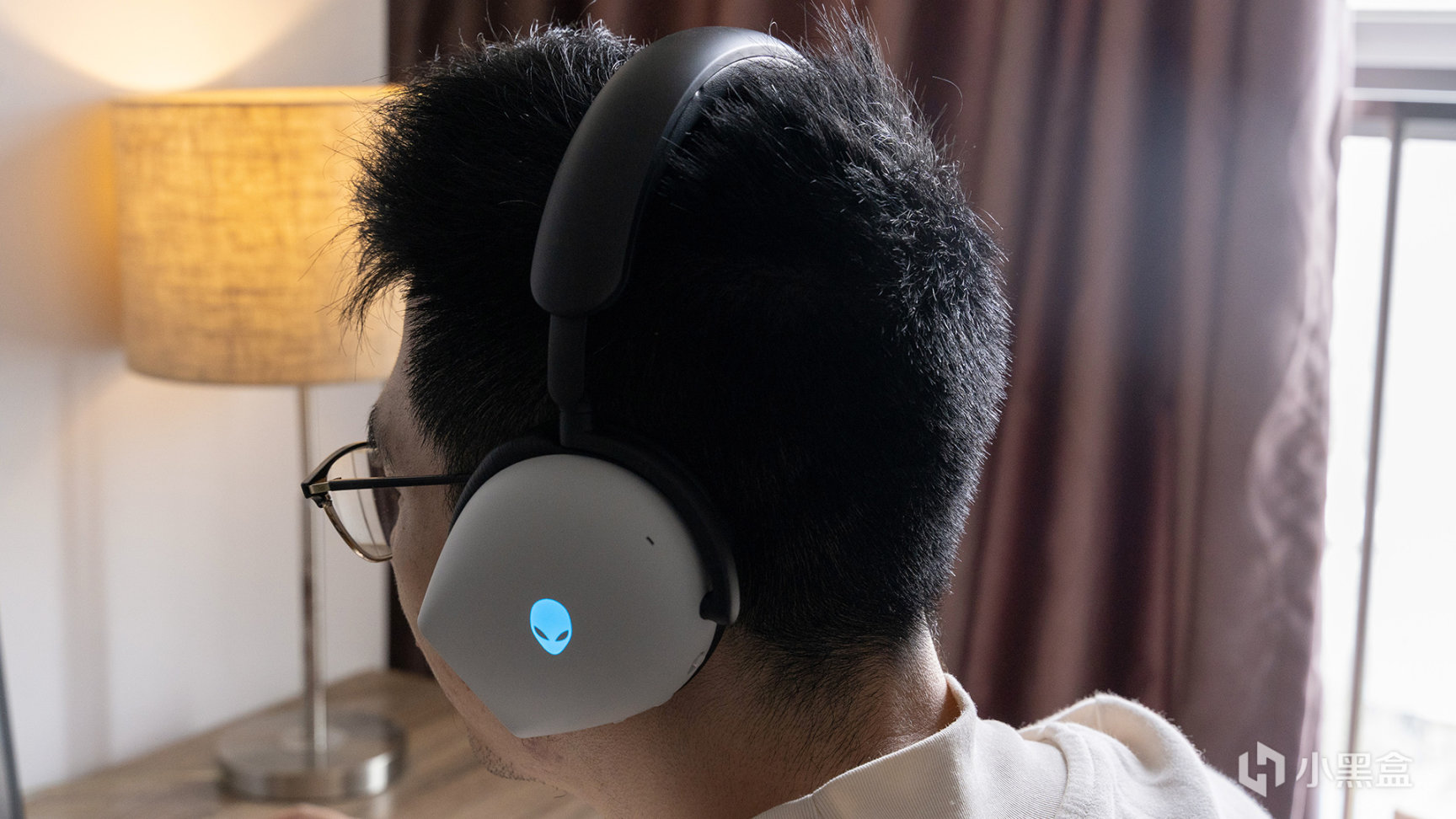 AW920H这款耳机外观设计比较时尚,白夜配色还是相当简洁,带出门也不会社死,耳罩两边的外星人LOGO也支持AlienFX RGB 灯效,而右边耳罩可以通过触摸和点按的方式实现音量、接挂电话等复杂操作,全程无需按键。