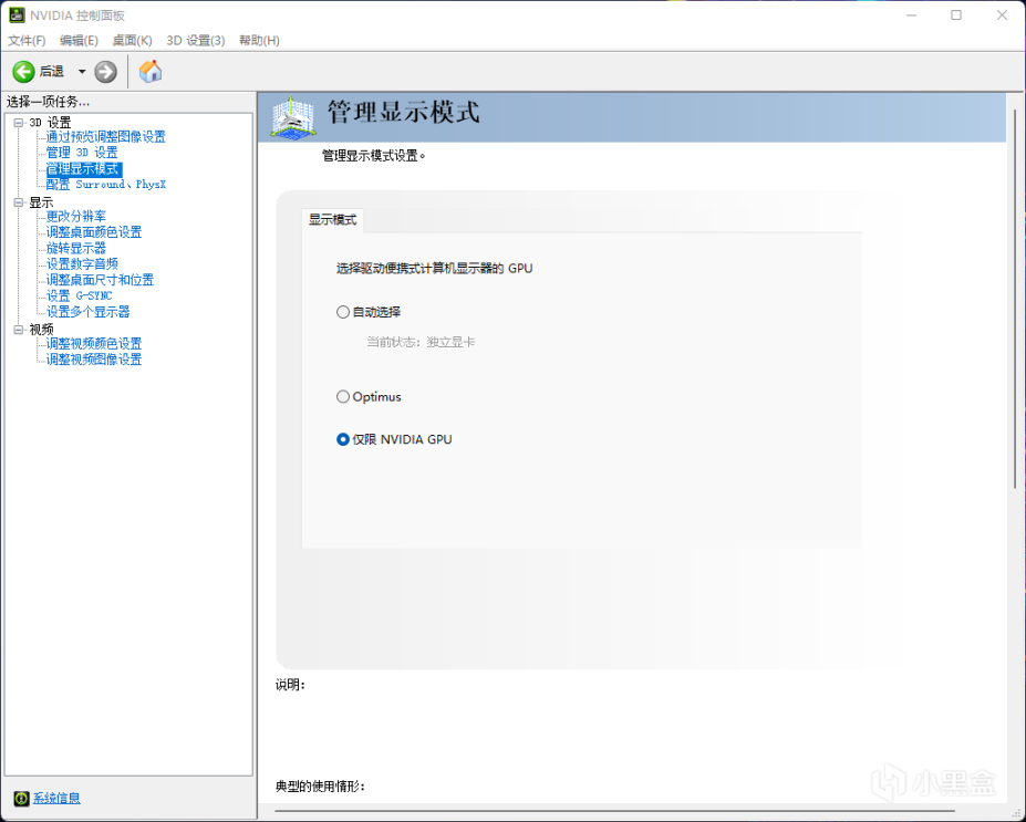 Advanced Optimus(动态显示切换),也就是独显直连可以直接热切换,这一点是必须的配置,尤其是对于那些高帧率网游来说很重要。