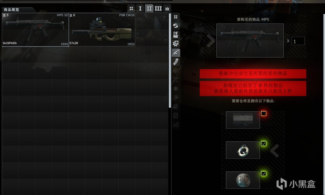 以上所有的武器配件和武器都只需要商人等级一级就可以购买。