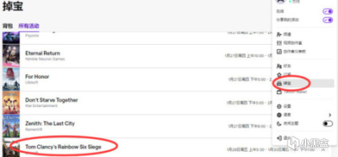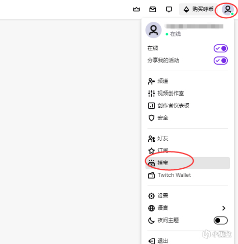 绑定账号成功之后,返回Twitch,点击右上角个人头像,选择掉宝: