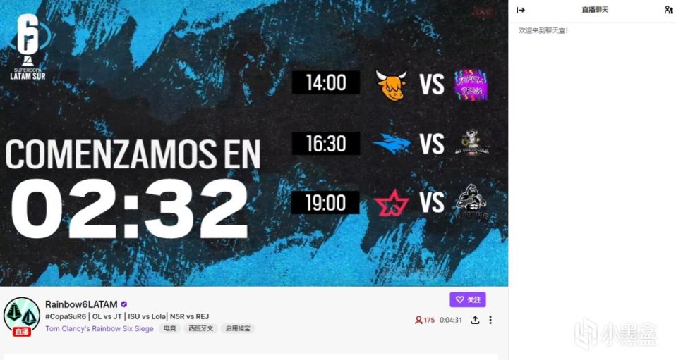 - 前往包括 Rainbow6、Rainbow6LATAM 和 R6esportsBR 在内的参与中的直播频道