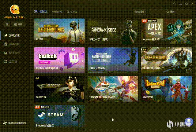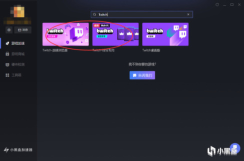 首先,需要加速器加速Twitch,目前有些加速器偷偷下架了Twitch的加速,但是小黑盒加速器没有,亲测可用,在小黑盒加速器中搜索“Twitch",前两个都可以用,个人推荐用”加速浏览器“,比较快,文章末尾有小黑盒激活码供各位盒友使用: