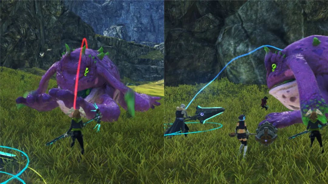 蓝色目标线是怪物仇恨被T拉住的情况,可以放心输出