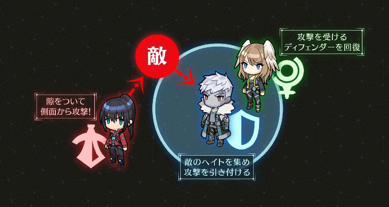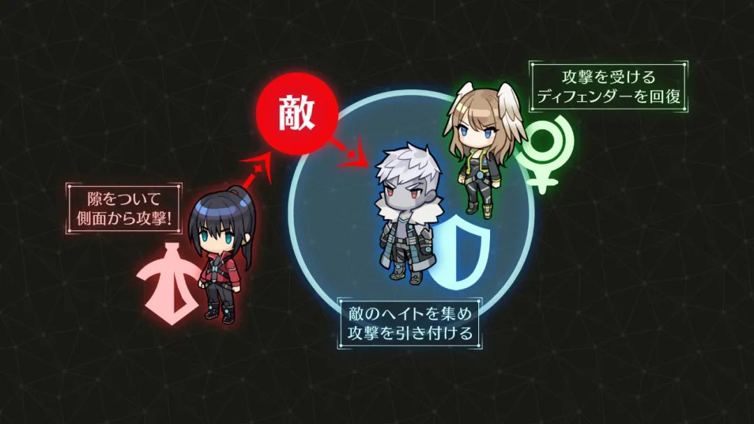 防御型角色身边有持续存在一个小蓝色光圈,这应该是帮队友扛伤害的范围。