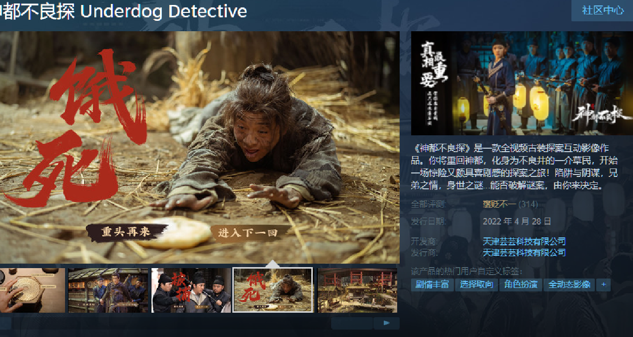 国产古装探案互动电影游戏《神都不良探》已于4月28日发售,首发优惠15%,内容为前1-5回。