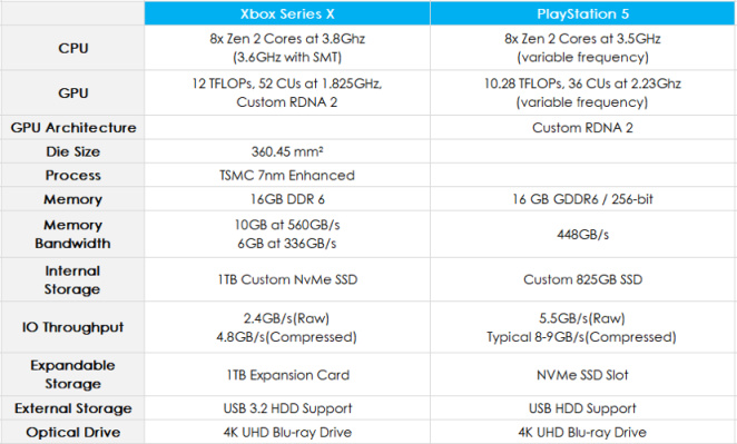 首先我们来看看次世代主机xbox series x与playstation5的硬件规格