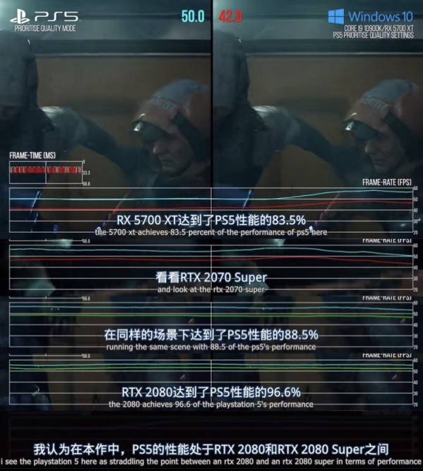 在数毛社的测试中,可以发现在同样的画面与帧率的情况下,ps5的运行效果接近于2070s,与浮点运算的差距特别相似。