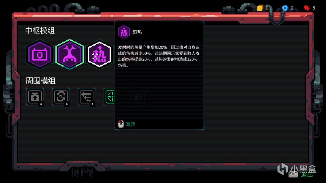 「中枢模组」与「周围模组」不同,对于机甲的基础提升有不同的方向,建议玩家通过自己的战斗风格选择适合的「中枢模组」。例如对输出有要求的玩家可以选择超热模组,战斗力会倍增,但缺点也是容易过热。
