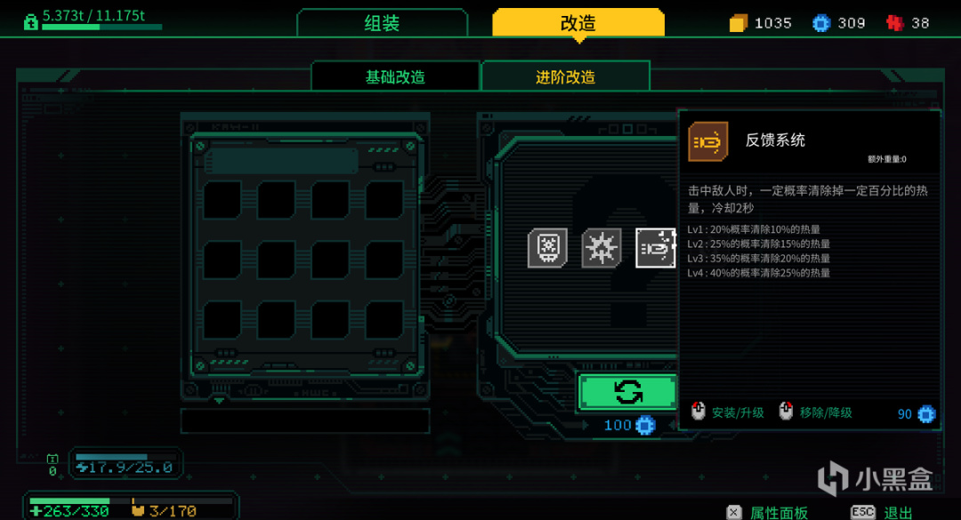 「进阶改造」中,玩家可以通过消耗蓝色素材随机获得5个不同的改造系统,然后再花费素材进行学习。上文中提到的「解锁改造」中解锁的功能,就可以在此随机获得。