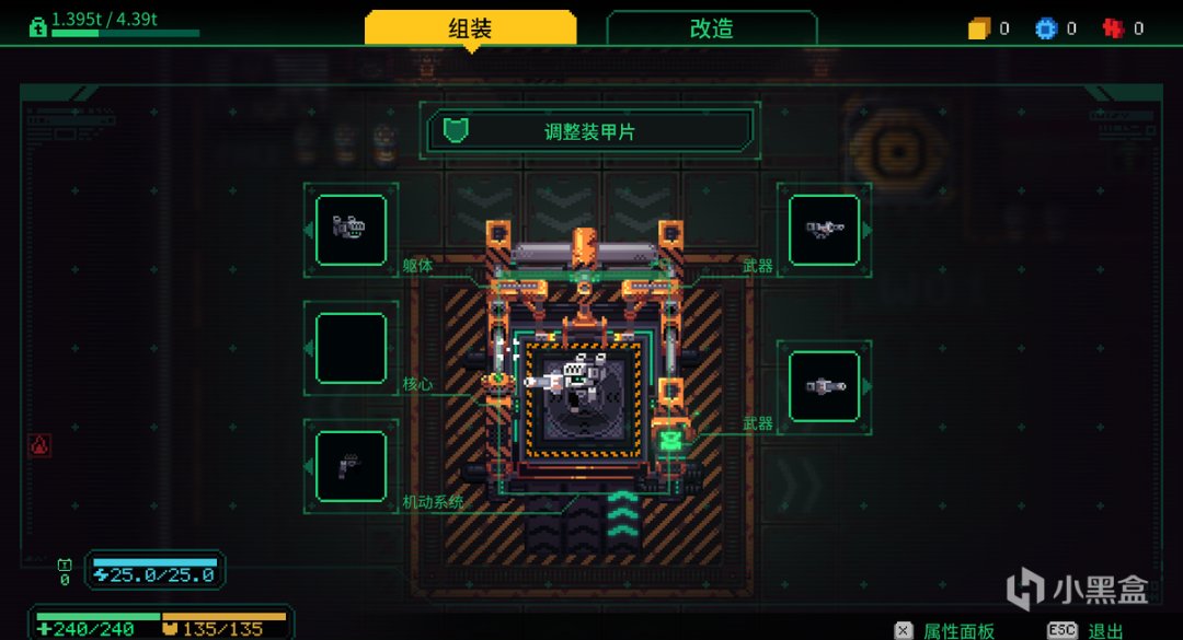 其中「躯体」、「核心」、「机动系统」,主要是应对机甲的基础属性「血量」「装甲片」「电力」以及移动能力的提升。