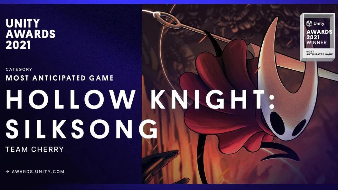 感谢所有支持我们的粉丝,《空洞骑士 丝之歌》获得 2021 Unity最受期待奖,我们很荣幸,非常感谢。