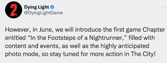前段时间,《消逝的光芒2》曾宣布将于6月推出首个剧情DLC。而近日,这个DLC被宣布延期至9月,并公布了新的更新路线图。