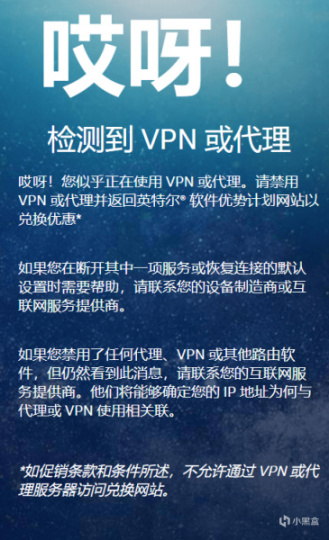 解决方法就是找肉身在活动地区的朋友或者高匿节点(同个IP下只能有一个账户,不然Intel会ban掉其中一个——来自往期活动的总结)