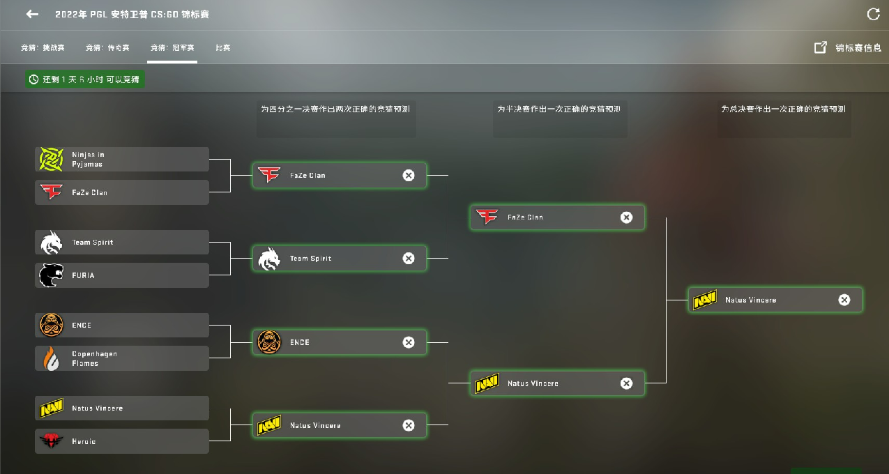 Faze最近的比赛并不是很多,ESL冠军依然是这支队伍打RMR前最后的比赛,或许是对于银河战舰的期望太高了,每次输比赛都会觉得Faze状态堪忧。RMR输给过BIG,传奇赛输给过ence。Faze最近没有跟NAVI、G2这类交过手,所以状态怎么样真不好说。不过本身作为世界第一,我觉得进入决赛的机会还是五成以上的。
