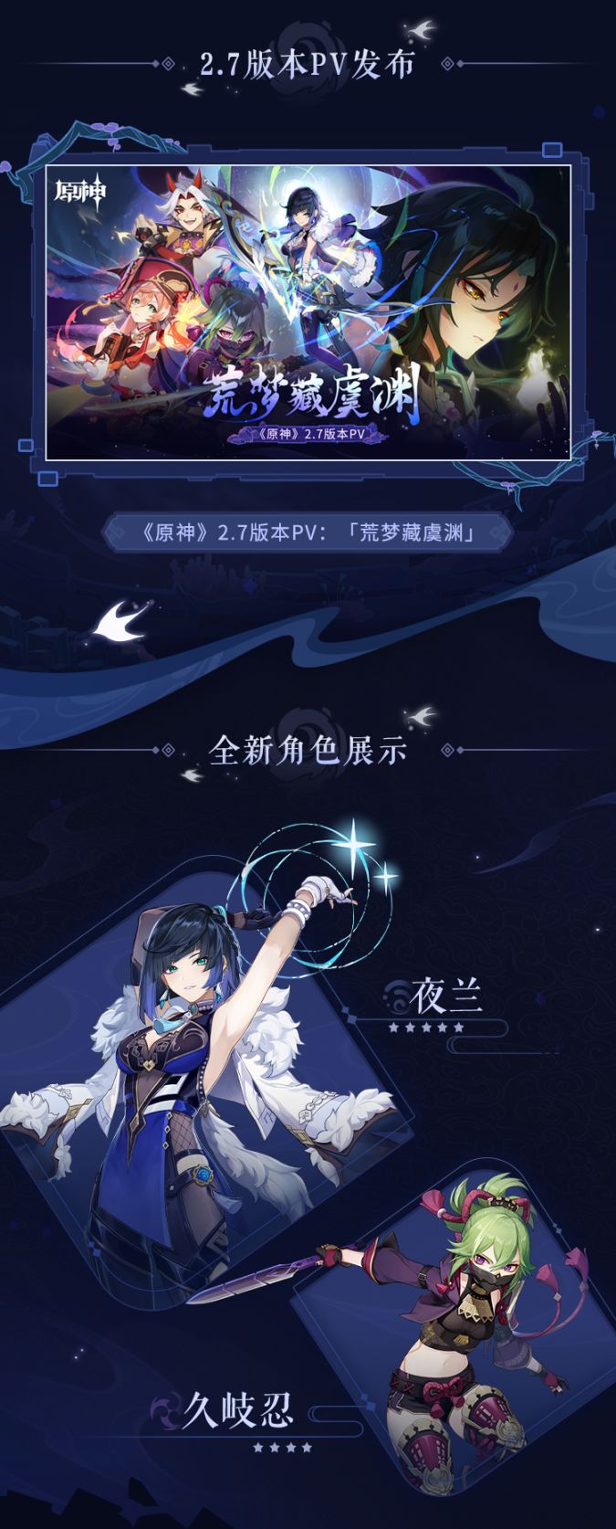 《原神》2.7版本「荒梦藏虞渊」将于2022年5月31日上线。感谢各位旅行者的支持与陪伴,我们将为大家带来更多2.7版本的最新消息~