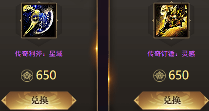 二代传奇斧头和钉锤,星域有收藏成就,而且1阶段前置有一个连带成就“得意门生”卡收藏难度仅次于奥罗拉的背井离乡,等不及要用的建议先换出来慢慢做成就体验过程,钉锤没有收藏成就,比起硬搓肯定是这里换更划算,优先级的话综合来说还是斧头高一些。