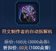 能无限次拆解装备上符文法印以及灌注的提取器,怎么说呢,金额倒是很好凑单,也给硬币,但是上架太久了导致拍卖的这个价格非常的微妙。(玩家之间估计私下交易在140R左右)除非是能事先跟人谈好合适的回收价格,不然谨慎购买 。