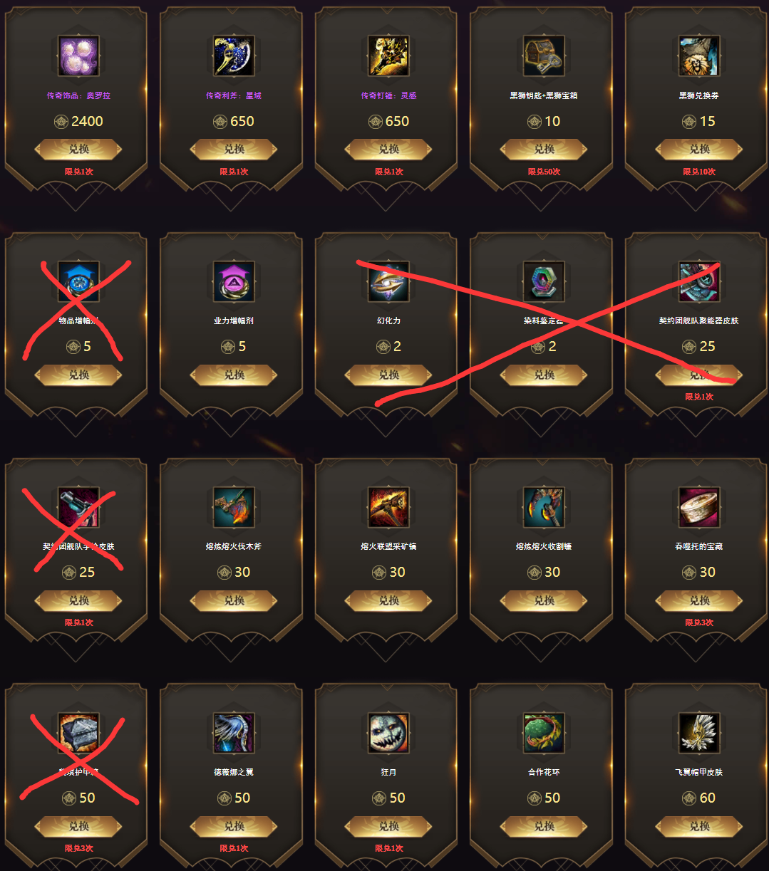 5月之后2周的硬币传奇兑换列表如上,请各位自行根据需要考虑兑换。