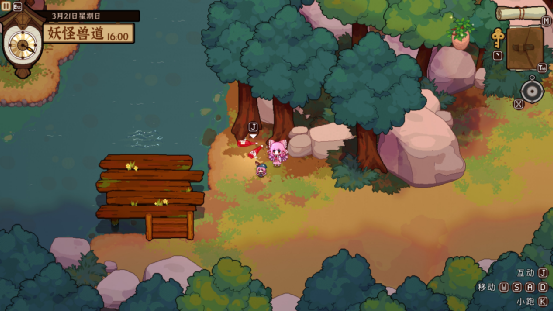 白天的活动从上午十点开始,这个阶段玩家可以在地图上收集各种食材或与人物互动。除了跟角色的日常对话和在商人处购买东西,其它操作均会花费半个小时的时间(包括在地图间移动),到了下午六点便会进入夜晚的经营模式。